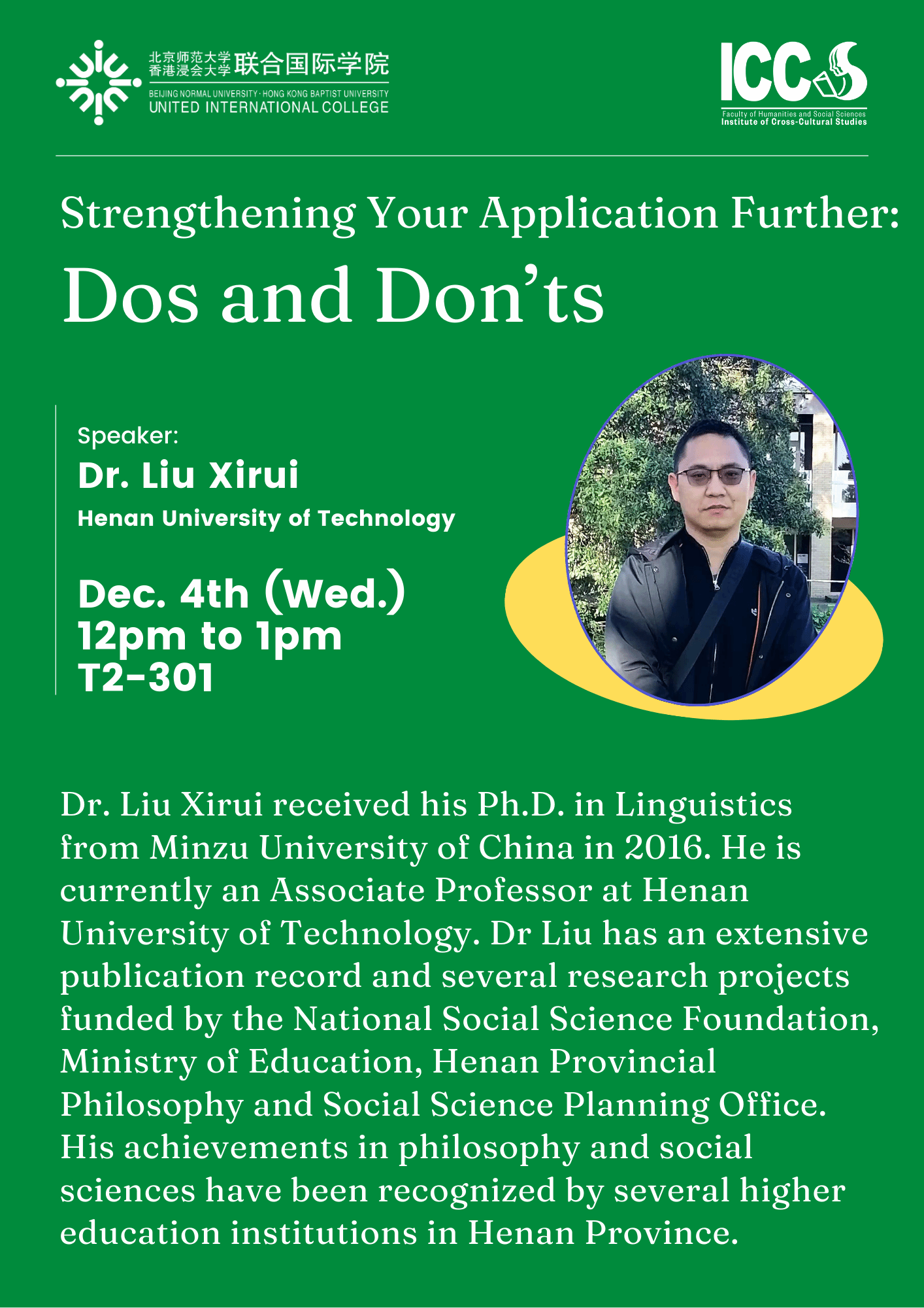 "Strengthening Your Application Further: Dos and Don’ts" – a Grant Writing Workshop by Dr. Xirui Liu(刘希瑞) – 4th December 2024
