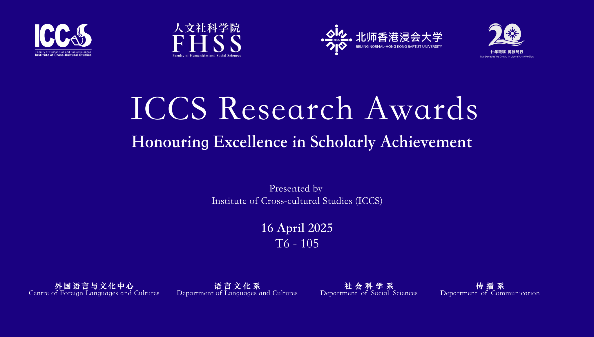 ICCS committee hosts the ICCS Research Awards on 16 April to celebrate the exceptional research achievements of FHSS faculty and students.
