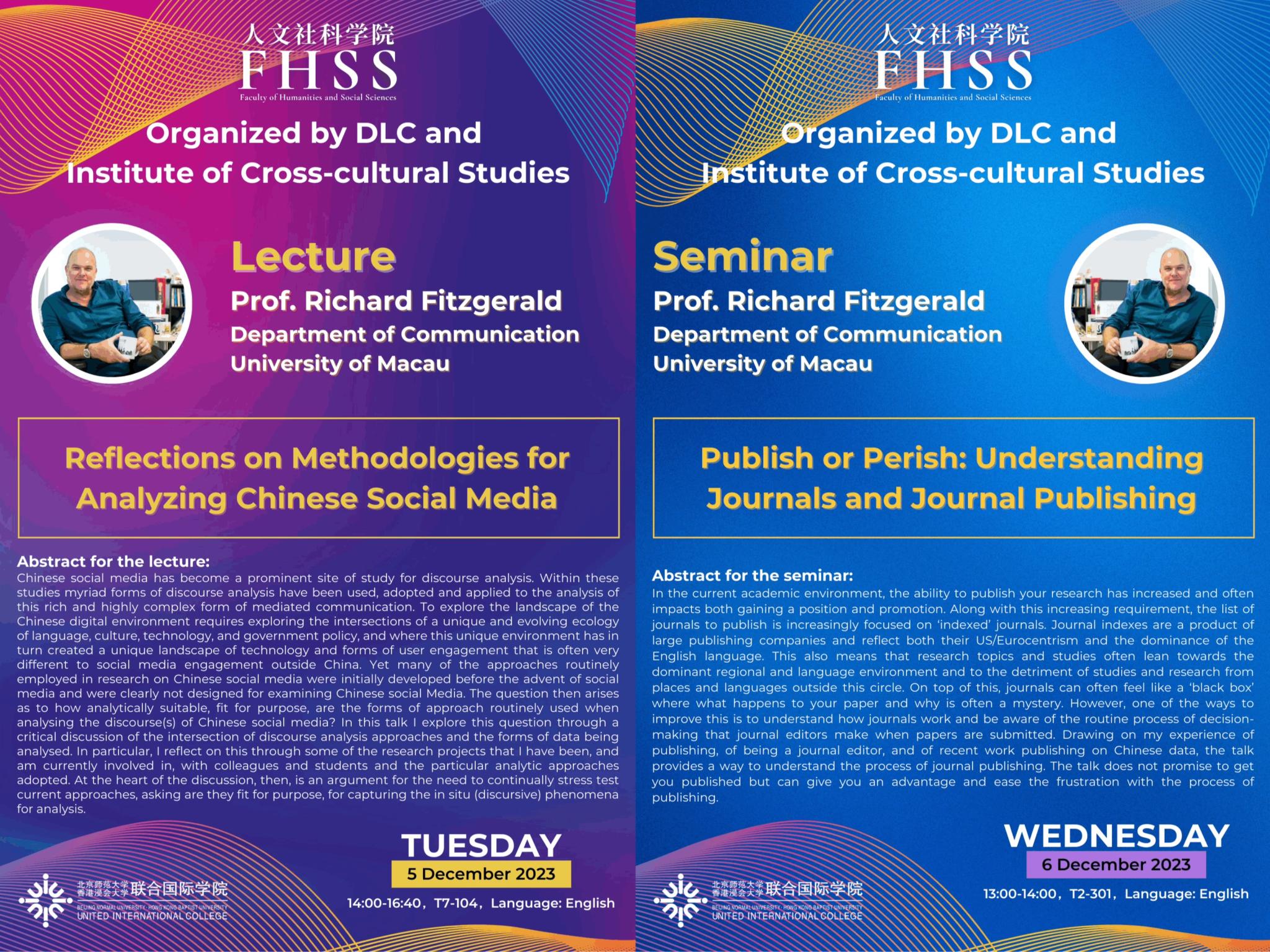 The ICCS and the Department of Languages and Cultures co-hosted two seminars by Professor Richard Fitzgerald of the University of Macau (5th & 6th December). Seminar topics included methodologies for analyzing Chinese social media and understanding journals and journal publishing