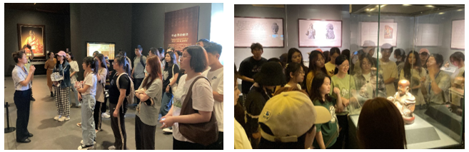 师生们参观了佛法中融·般若如海佛教中国化在广东两个主题展览。通过参观展览中的佛教造像、经书拓本、佛教器具等展陈藏品,同学们更加亲近地感受到佛教的庄严与智慧。跟着讲解员的专业讲解和引导,同学们不仅了解了佛教传入中国两千年来与中国传统文化艺术的融合与发展过程,还感受到了佛教历史艺术和的博大精深与魅力。此外,同学们还了解到广东在中外佛教友好交流与发展历史上的特殊地位,及近年来为建设粤港澳大湾区服务一带一路做出的突出贡献。