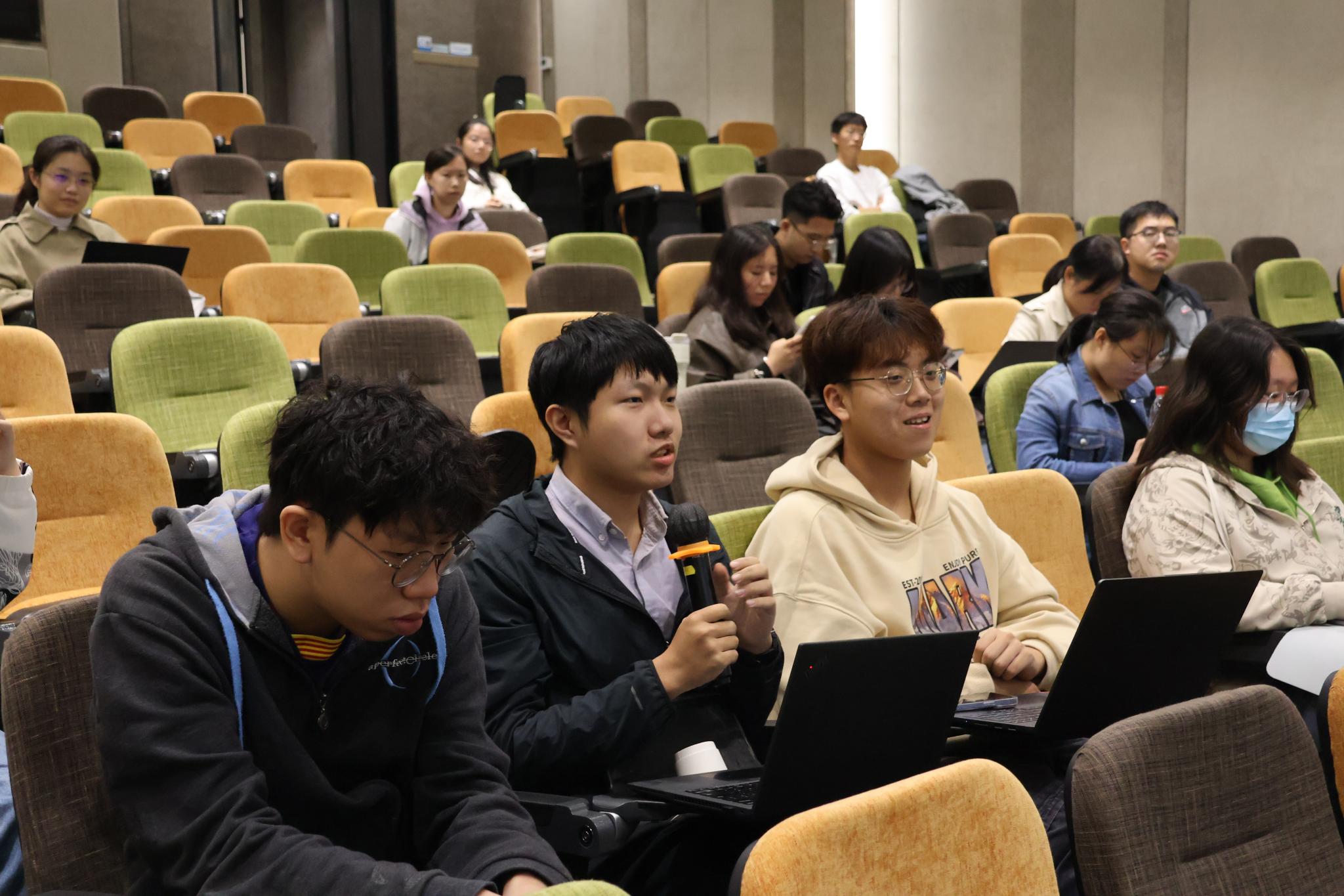 师生们在问答环节中展开热烈讨论,陈校长回应了关于图腾符号分类和历史叙述等问题,强调历史研究应坚持以证据为基础,避免“曲学阿世”。最后,学生代表谢雨晨向陈校长赠送纪念品,讲座圆满结束,师生共同合影留念。