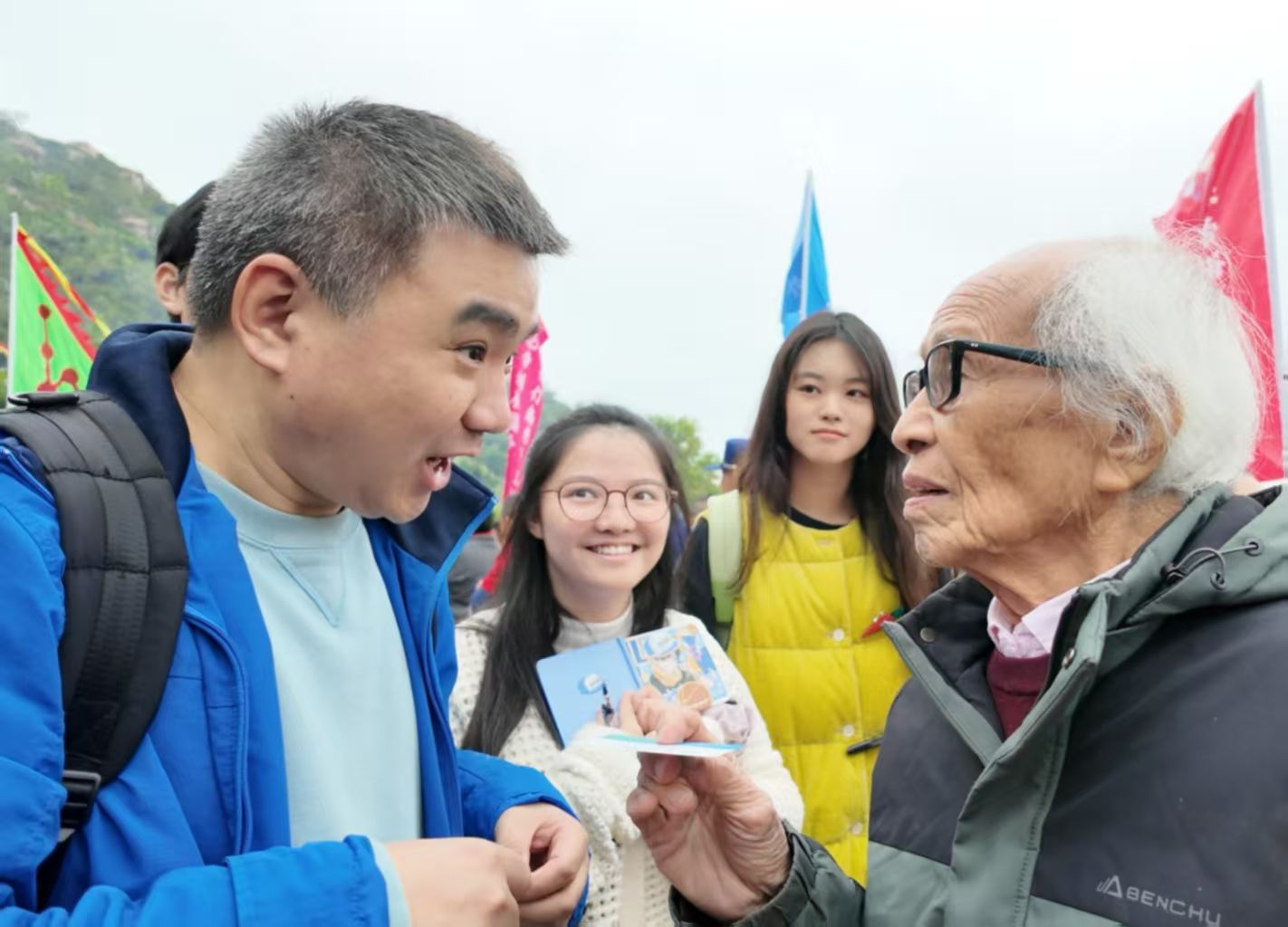 祭海仪式结束后,身着红衣的北帝诞理事会成员们将祭品装框上担,燃放鞭爆,敲锣打鼓,列队前往山上的北帝庙祈福。我校学生们跟随队伍拾级而上,期间还帮助工作人员扛担子,沉浸式体验岛民们对神灵沉甸甸的敬意。