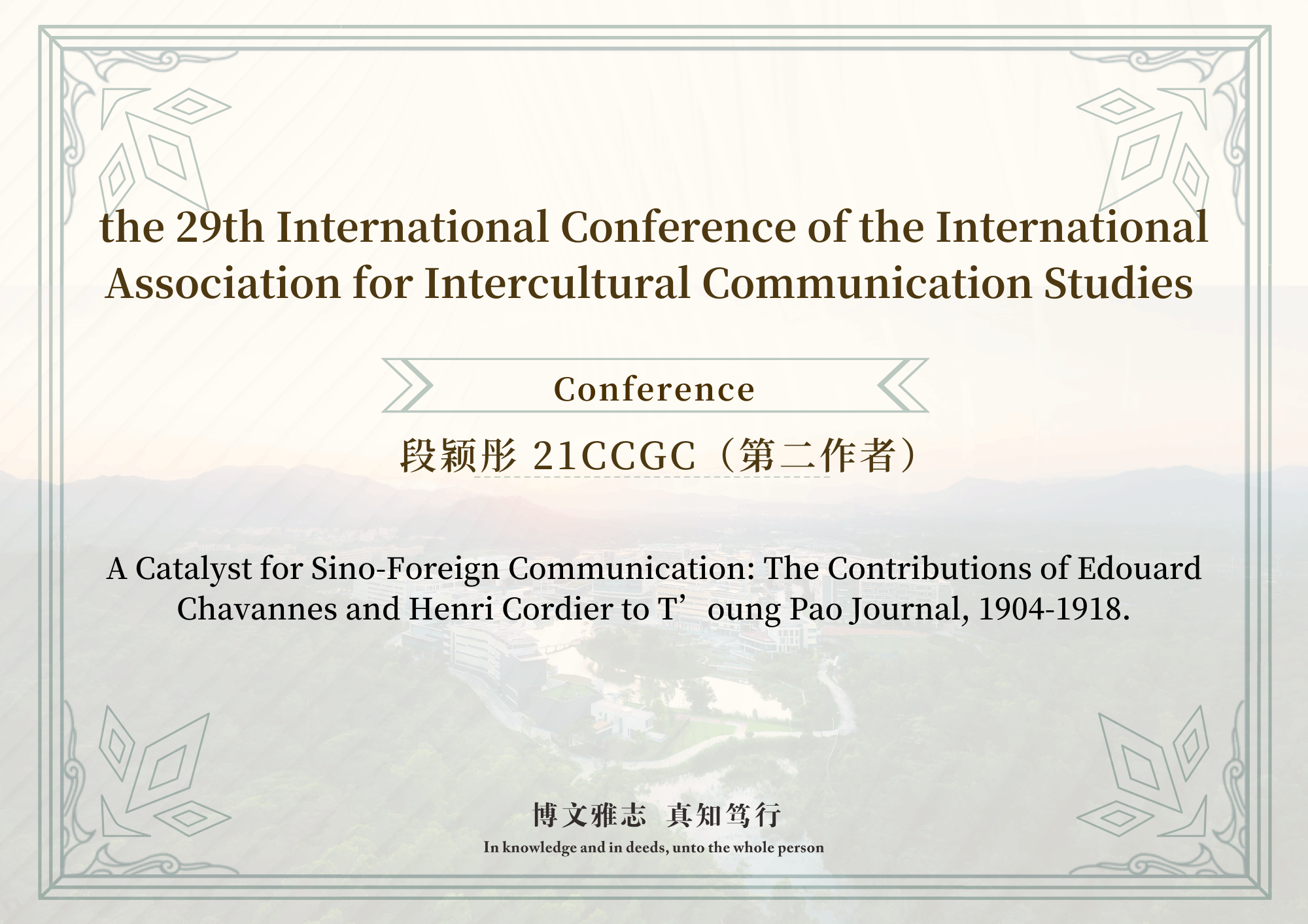 文章:A Catalyst for Sino-Foreign Communication: The Contributions of Edouard Chavannes and Henri Cordier to T’oung Pao Journal, 1904-1918.