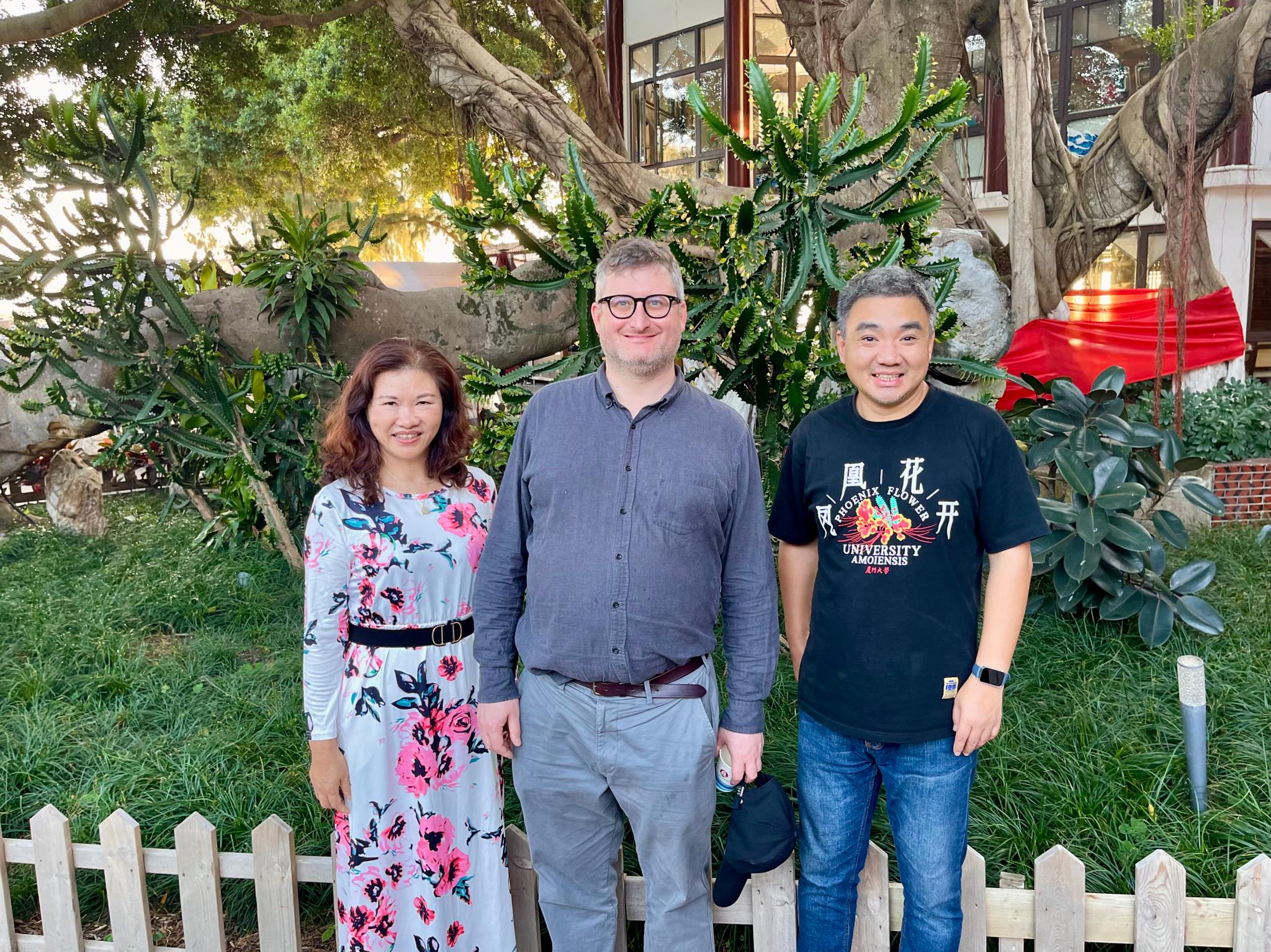 Professor Hill was invited by Professor Yuying Ye of the Department of Chinese Language and Literature at Xiamen University to deliver two lectures on 23rd and 24th November. On the morning of 25th November, Dr. Deng, Dr. Chen, and Professor Hill held a profound discussion regarding the issues arising from their translation project. In the afternoon, Dr. Chen and Professor Hill discussed academic research, translation and their plans for cooperation. They also made preliminary plans for cooperation in the development of their students and other areas, accompanied by Professor Ye.
