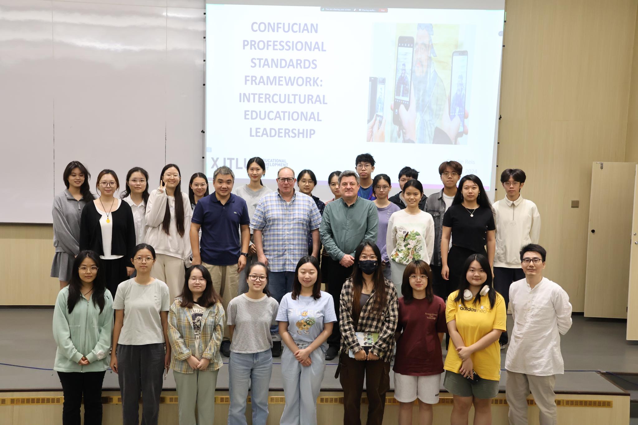 On October 24th, 3:00 PM, Dr. Charlie Reis, the Director of Educational Development Unit of the Xi’an Jiaotong-Liverpool University, invited by DCOM, FHSS, gave a lecture at T7-104, entitled “Confucian Professional Standards Framework: Intercultural Educational Leadership.” The lecture was hosted by Dr. Jianing Chen. Dr. Xiaolong Diao from DCom - CCGC, Dr. Milen Gotchev Jissov, Associate Director of CTL, and many students attended.