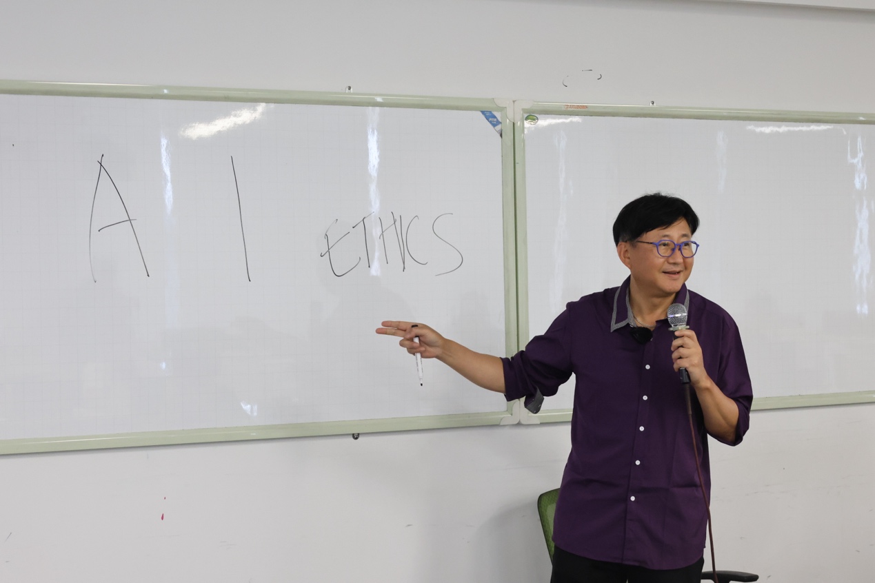 In the afternoon, Dr. Bae led a discussion on the ethical and social implications of AI, focusing on privacy, unemployment, copyright issues, and mis- and disinformation. He reminded students that while AI is a powerful tool, it requires ethical oversight, urging them to maintain critical thinking when using AI.