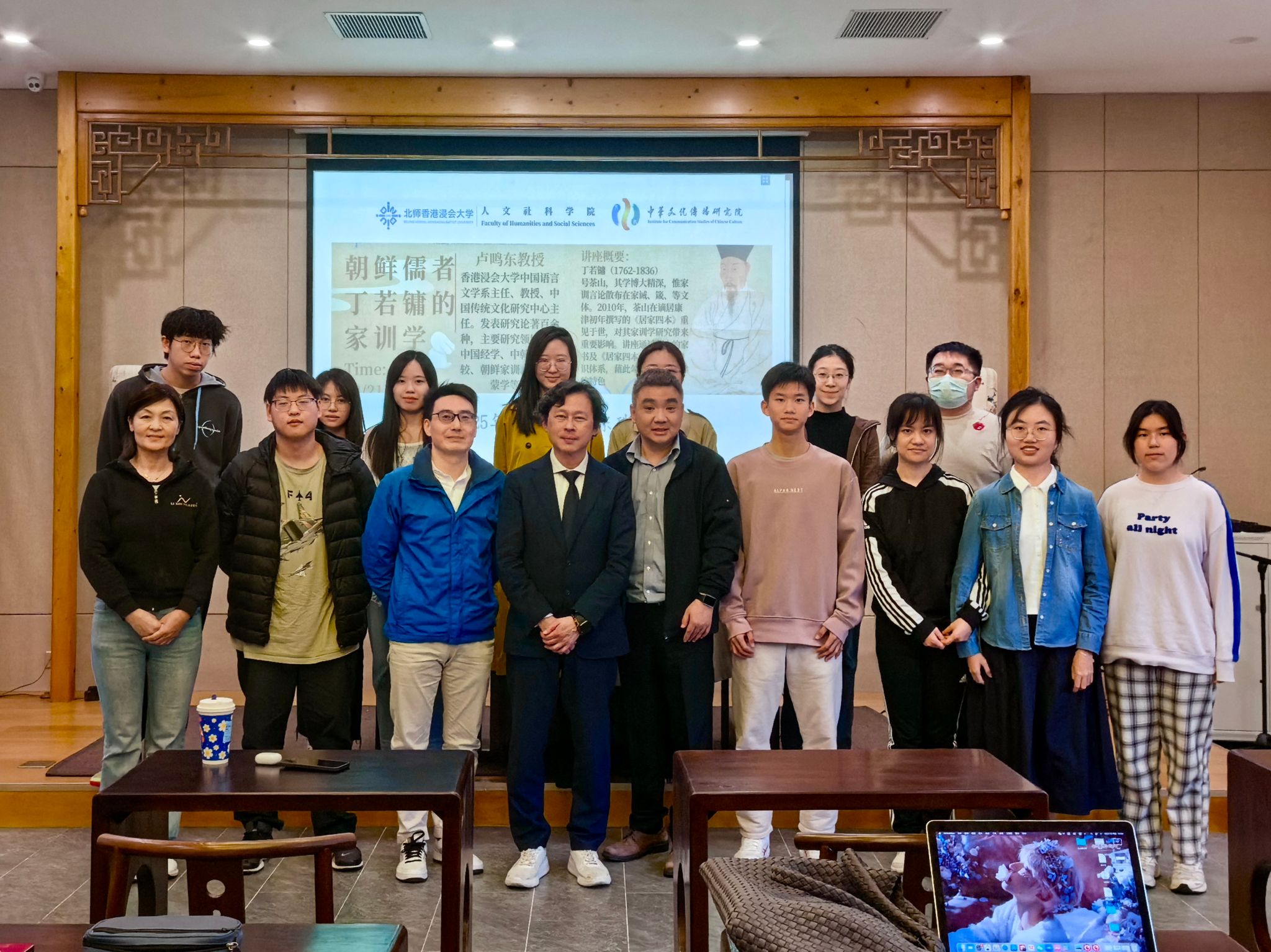In the lecture, Prof. Lo explained in detail the educational background, doctrinal basis, writing form and ideological connotation of Jeong Yak-yong's family instructions, and elaborated his family education thought which had a profound influence on family education and social norms on the Korean tradition, and its norms are still relevant today. The lecture aroused great interest in the audience, who enthusiastically asked questions and engaged in a lively discussion on such topics as the spread of Confucianism in ancient Korea and others. To conclude the lecture, Prof. Lo took a group photo with the audience.