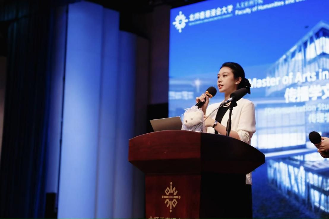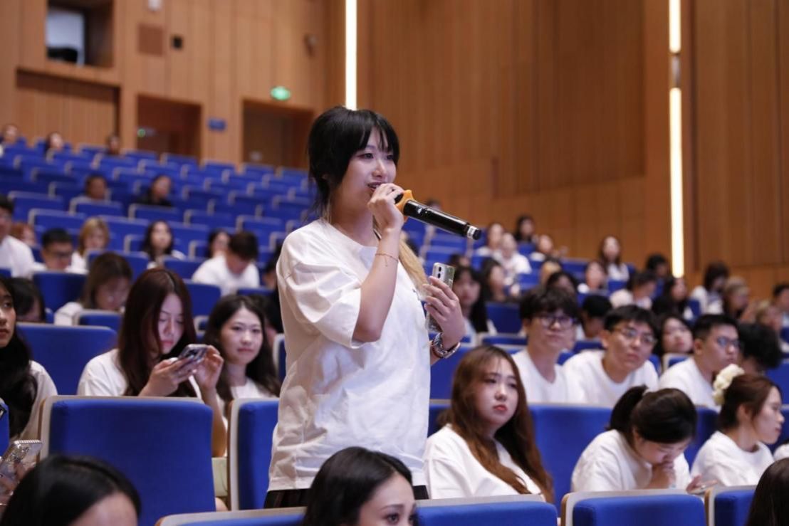 专修助理导师韩觐屿女士作为毕业学姐分享了自己在学校的学习体验,鼓励新生积极参与课堂讨论与课外实践,全面提升综合素养和专业能力。
