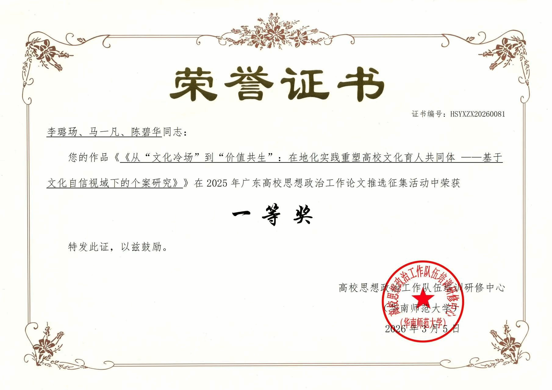 Among the entries, the First Prize paper, titled “From ‘Cultural Apathy’ to ‘Value Symbiosis’: Localized Practice Reshaping the Community of Cultural Education in Universities — A Case Study from the Perspective of Cultural Confidence,” focuses on practical issues in cultural education in higher education institutions. Grounded in localized practice, the paper explores how collaboration between universities and local communities, community integration, and practice-based education can transform university cultural education from one-way transmission to two-way interaction, and from activity-based participation to value symbiosis. It offers valuable insights for the innovative development of ideological and political work in universities in the new era.