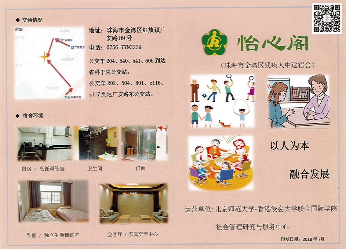 香港在精神康复领域有丰富的实践经验,从制度层面形成了以社区服务、住宿服务、职业康复服务在内的服务模式,其中,住宿服务又分为长期护理院、中途宿舍、中度智障人士宿舍及辅助宿舍,形成了完善的服务体系和轮候、转介机制,创新发展了以复原为本的精神健康服务。截至2017年,香港十八区共建立36间中途宿舍,成为精神康复者走向社会的中转站。北京师范大学-香港浸会大学联合国际学院(以下简称“UIC”)是中国第一所中港联合办学的高校,资源链接能力强,管理优良,其社会工作与社会行政专业在师资、服务资源、实践基地、研究能力等方面实力雄厚,2012年起成立社会管理研究与服务中心参与本土社会服务的发展后,至今已开展逾五十个社会服务项目,响应学校“服务社会”的办学理念,并有志继续积极参与金湾区残疾人服务事业的发展。