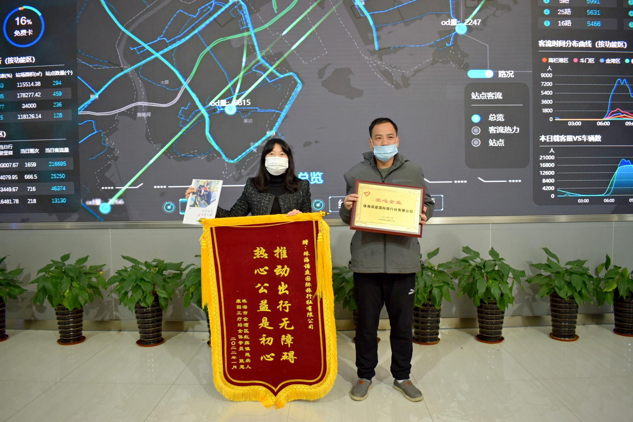 随后由红旗镇残疾人康园工疗站三位学员代表分别向珠海市公交集团董事长蒋模平、珠海市公交巴士有限公司横琴分公司、诺庭国际旅行社有限公司赠送锦旗、相册,并表示衷心的感谢,感谢他们对于珠海市无障碍环境设施的支持,对于残障人士出行的关心和关爱。正如锦旗上所写“捧场一颗心,献出一份爱”“伸出一双手,付出一份暖”,广大残障人士的出行,需要我们全社会成员共同关注,关爱残疾人,人人有责任。