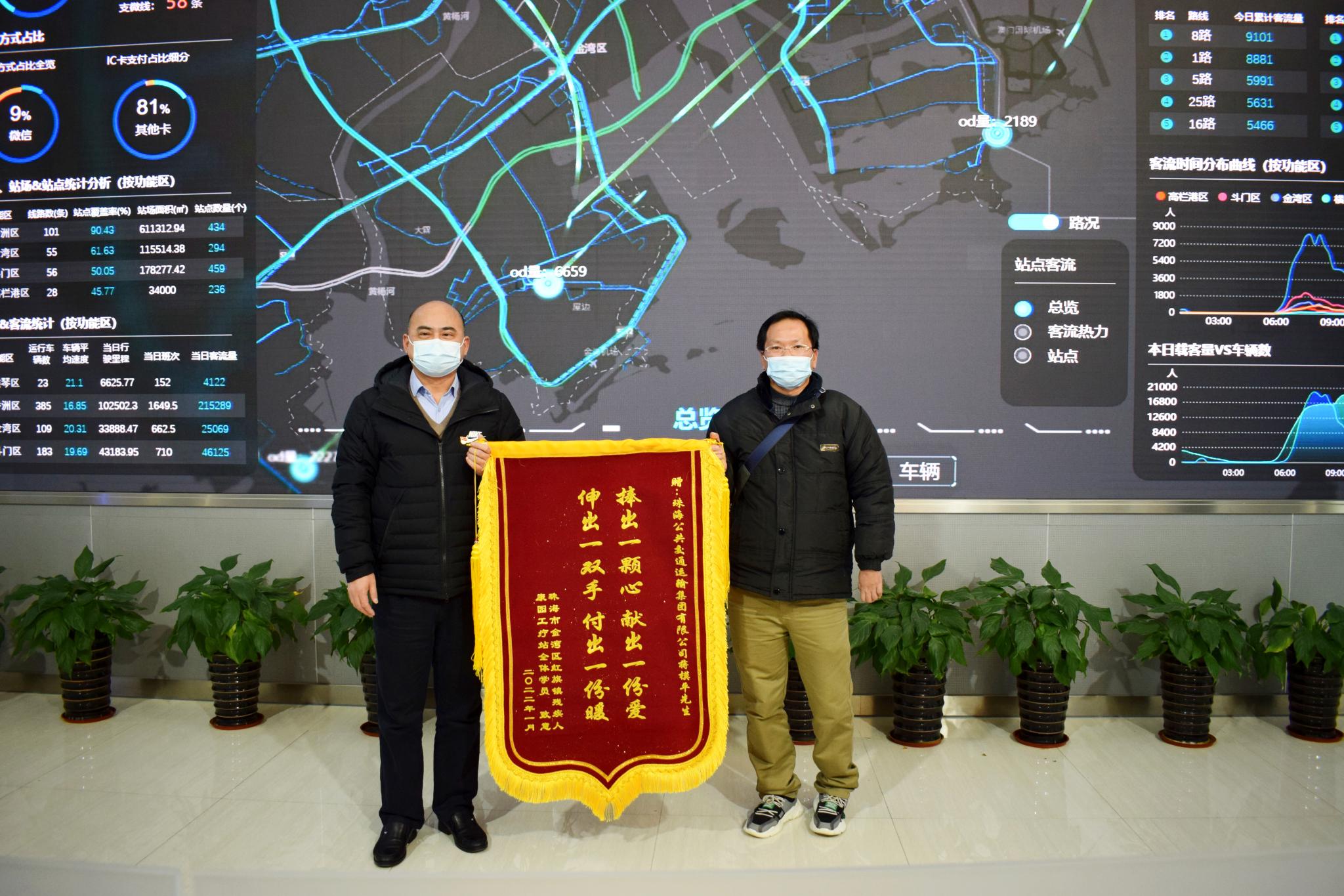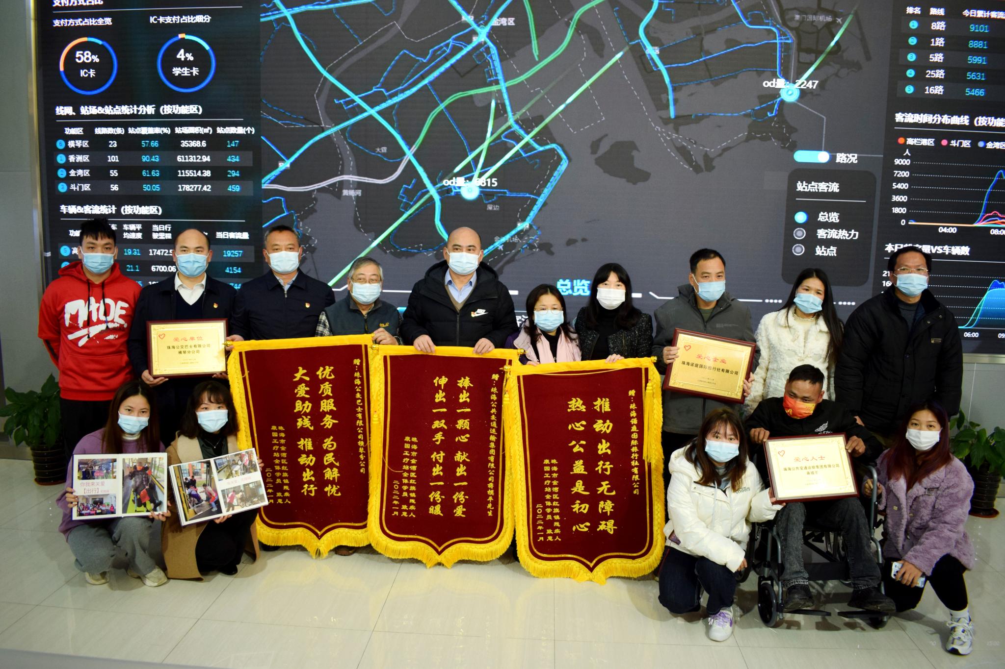 2022年2月23日,为了表达残障人士对这场特别“旅游”活动的支持方:珠海市公交集团董事长蒋模平、珠海市公交巴士横琴分公司、珠海市诺庭国际旅行社有限公司的感谢,社管中心负责人和运营的红旗镇残疾人康园工疗站项目工作人员带领三名学员代表,前往珠海市公交集团赠送锦旗。
