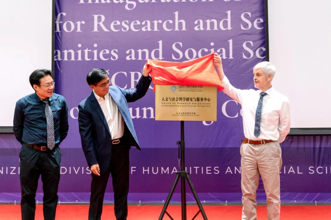 在活动上,北师港浸大校长、中国科学院院士汤涛教授,协理副校长(国际发展)、人文与社会科学学部院长贝力行教授,以及副院长赵晓斌教授共同为人文与社会科学研究与服务中心揭牌。