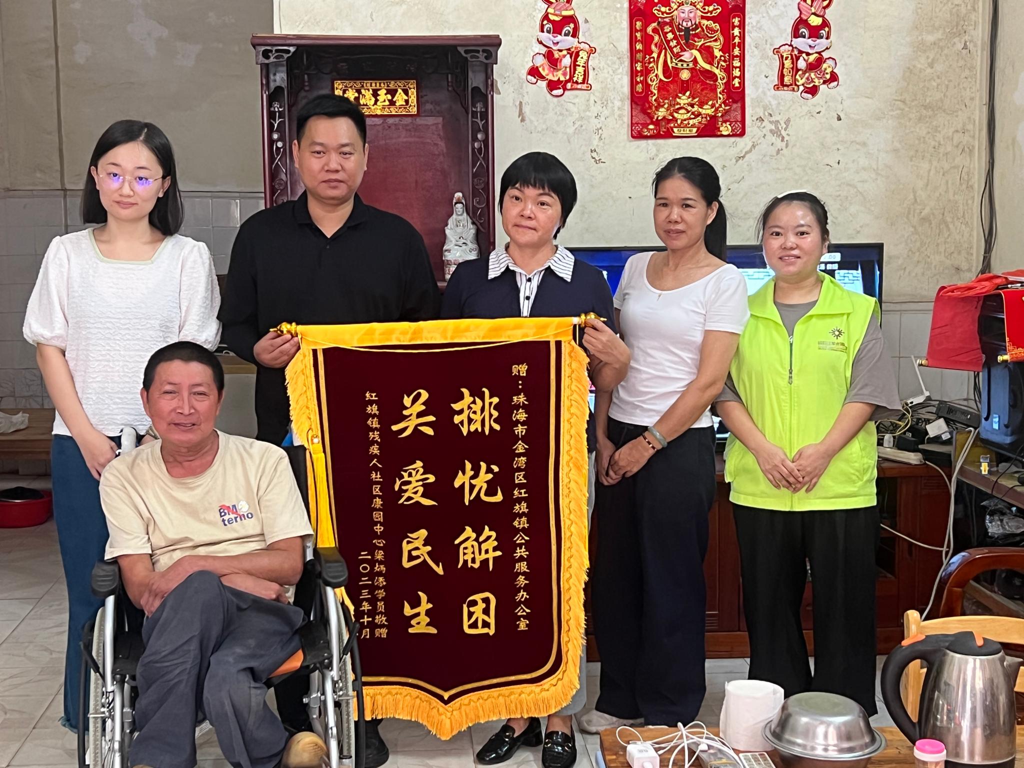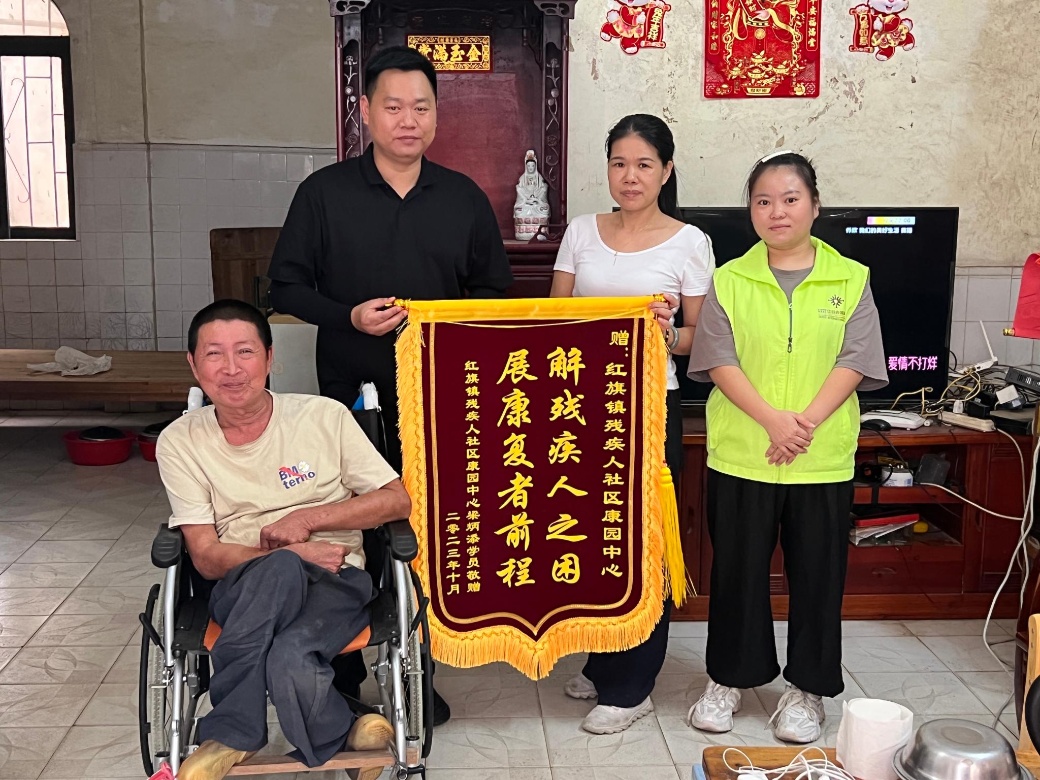 梁学员致送锦旗予红旗镇政府公共服务办公室及红旗镇残疾人康园中心