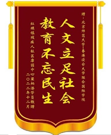梁学员藉政府领导到家里慰问的机会,特意制作三面锦旗,致送予相关单位/机构。梁学员以“关爱民生,排忧解难”、“展康复者前程,解残疾人之困”两面锦旗分别赠送予红旗镇政府公共服务办公室及红旗镇残疾人康园中心,感谢两者对自己一直给予关怀和帮助。梁学员另订制了“教育不忘民生,人文立足社会” 赠予北京师范大学-香港浸会大学联合国际学院人文与社会科学研究与服务中心,感谢帮忙筹集资金,让改造方案得以实现。