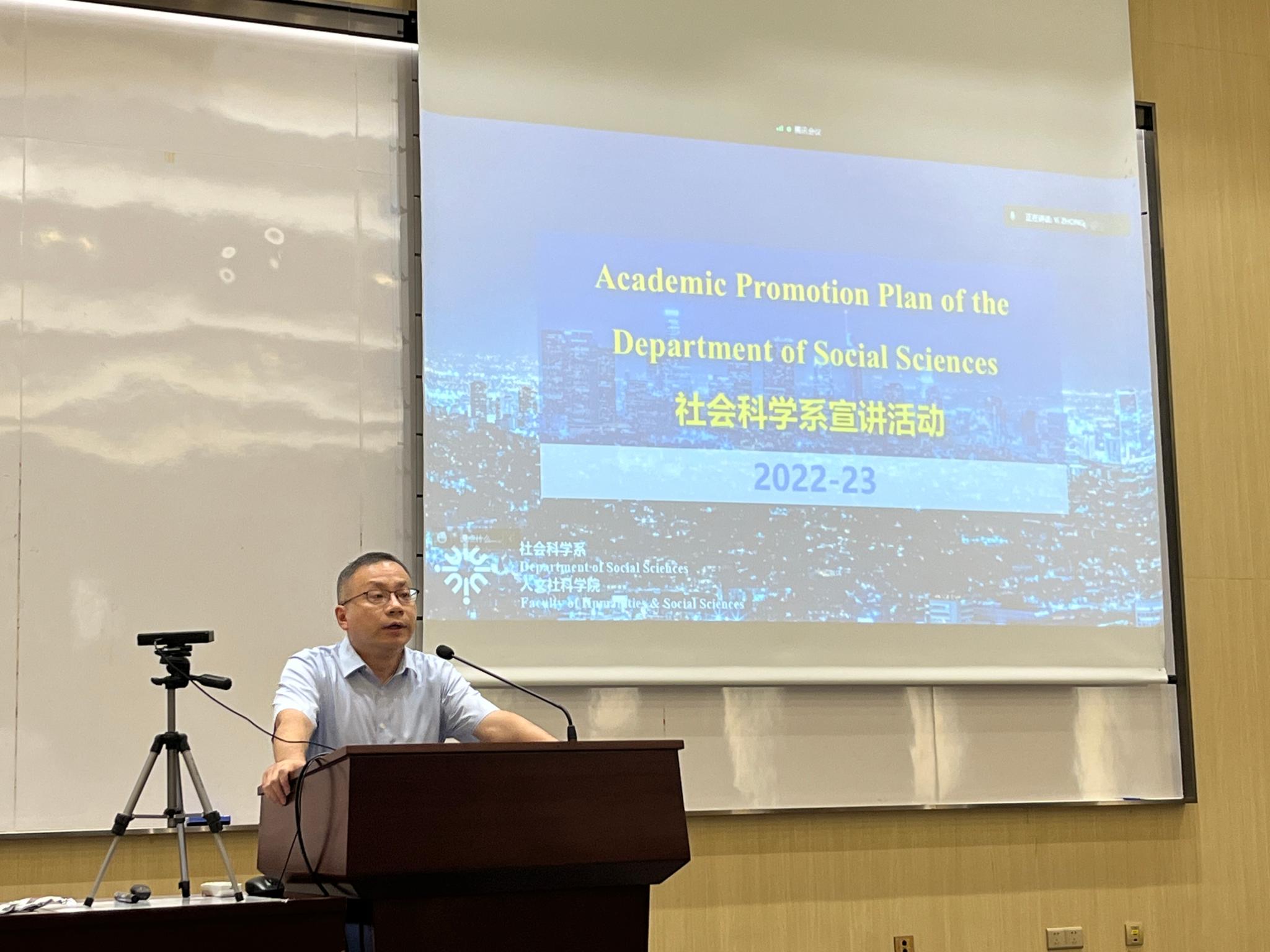 2022年9月28日社会科学系举行了2022-2023学科前沿讲座暨专业招生简介宣讲会。在社会科学系系主任兼教授王翔博士的主持下,来自数字社会科学(DGS)和全球化与发展(GAD)专业的授课老师们向学生介绍了DGS和GAD专业的具体架构以及发展前景。而系列讲座主题为“数字化与全球化世界中的社会科学”。