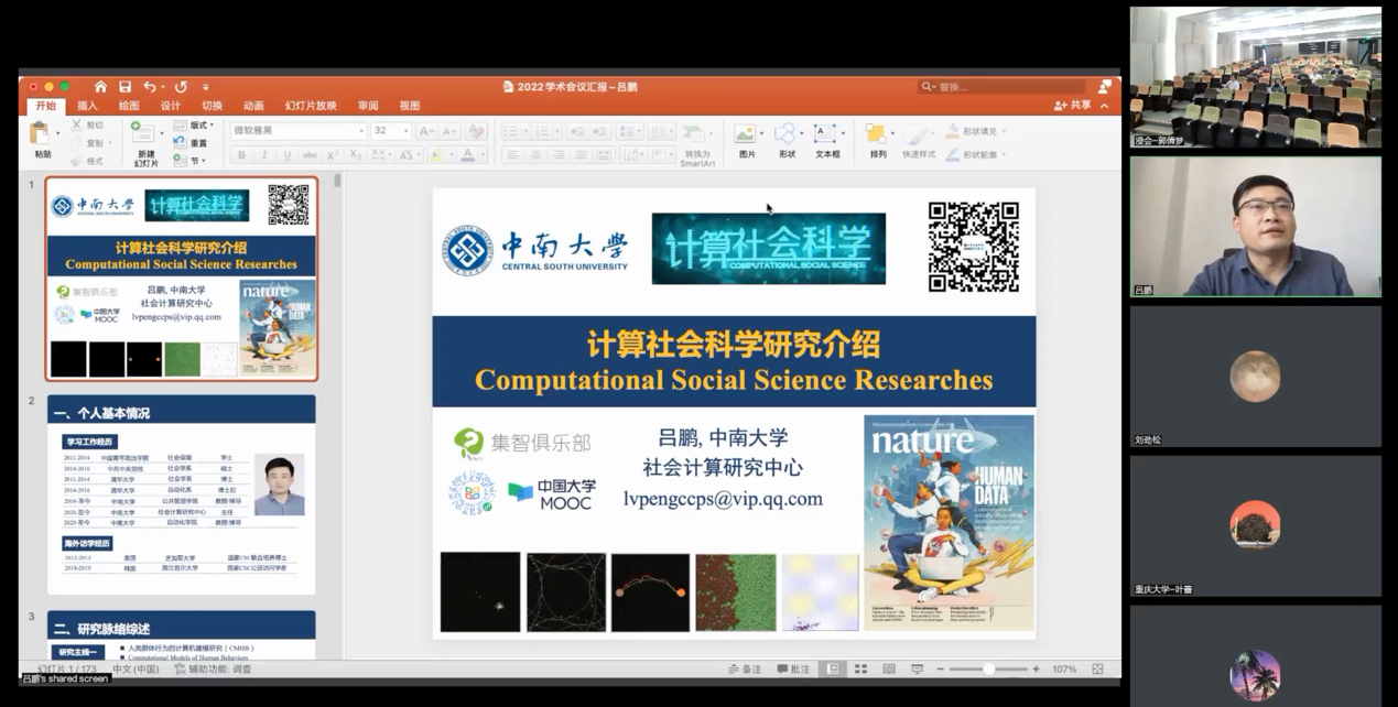 Professor Lv’s lecture introduced recent developments of the computational social science research. He proposes that social organisms are complex social systems, and that computational social science research has the advantages of being intelligent, systematic, and evolutionary. As a result, Professor Lv’s study is developed primarily along two interdisciplinary lines of thought. On the one hand, research paradigms of natural sciences are applied to the computer modeling of human group behaviours and human network group behaviours. On the other hand, at the level of social systems, the two-way interaction of social organism simulation and social governance study enables the organic fusion of social and natural science disciplines.