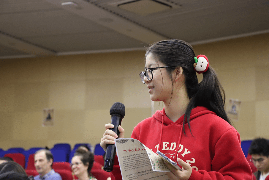3月15日,当大一新生手持定制邀请函走进T29教学楼105-106室时,一场史无前例的莎士比亚式悬疑剧正等待揭幕。英语戏剧与表演课程(ENG3163)的学生们以考究的服装、精心设计的线索和层层反转的剧情,打造了这场沉浸式谋杀推理剧场。