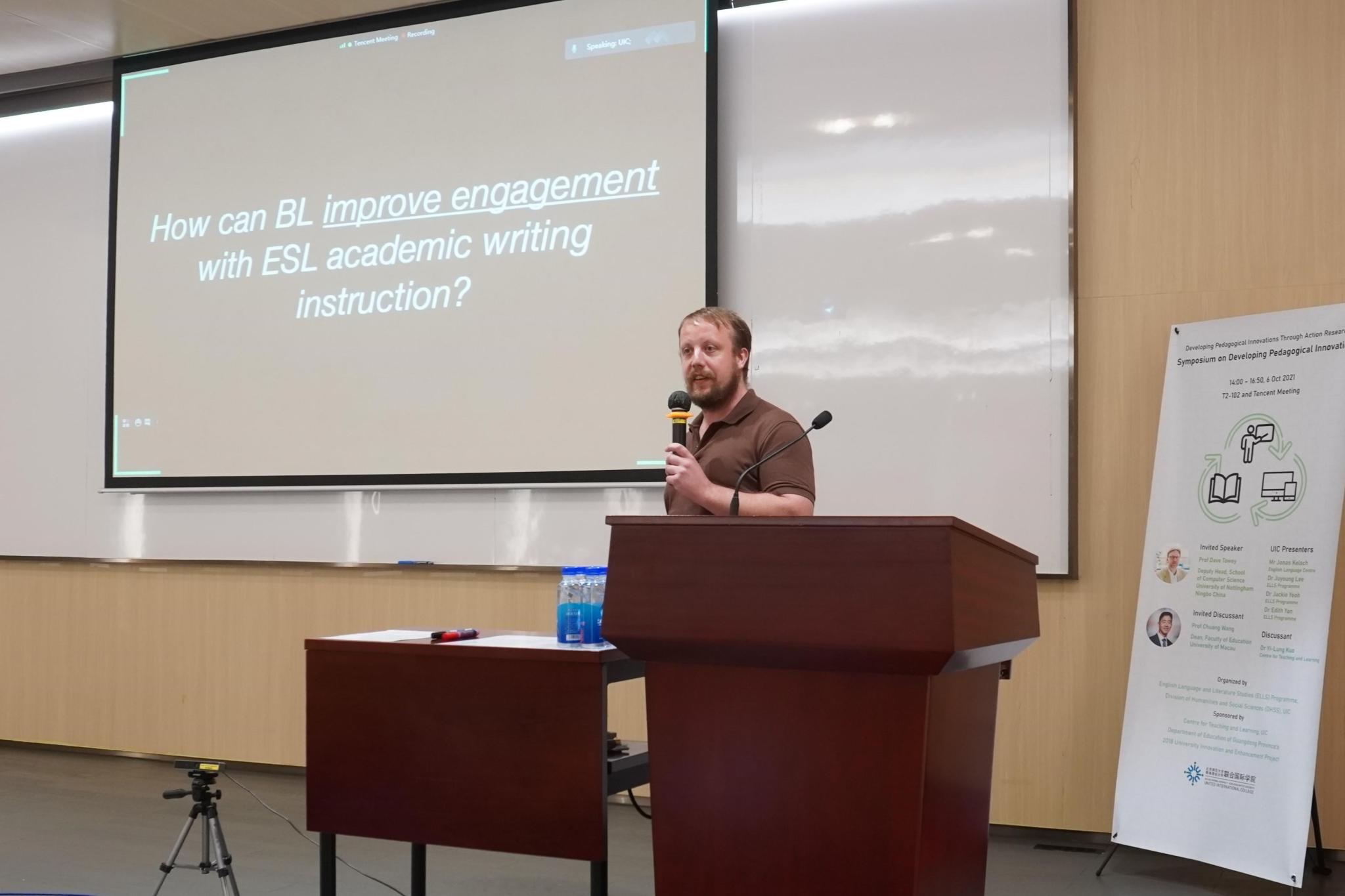 The Dean of the Division of Humanities and Social Sciences (DHSS), Prof. Adrian Bailey, offered opening remarks to begin the event. He pointed out, “It is important for higher education providers to keep up-to-date with the current trend of teaching with technology, so as to provide education that contributes to the development of China’s digital economy and society.”