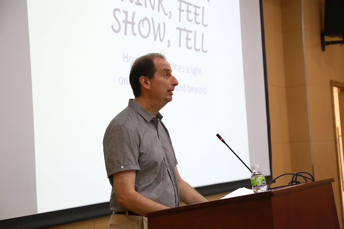 Professor Britton is the first Writer in Residence to be invited to UIC through the Division of Humanities and Social Sciences (DHSS). Associate Professor and Associate Dean of DHSS, Dr Charles Lowe, welcomed everyone before thanking UIC for allowing this opportunity and then he introduced Professor Britton. Professor Britton began the lecture by introducing himself and explaining the meaning of the word ‘playwright’. He detailed why it is ‘playwright’ and not ‘playwrite’, explaining that the word ‘wright’ on its own means ‘maker’.