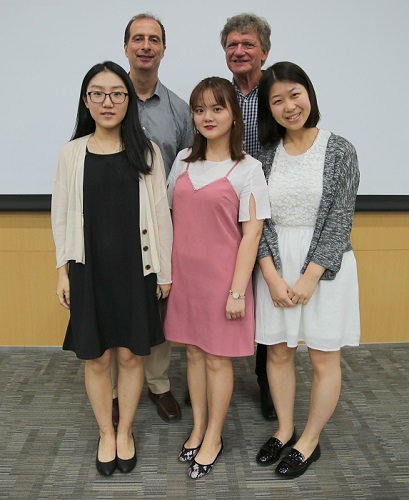(Back) Dr Charles Lowe and Professor Britton; (Front) Jia Xin, Bo Wei and Chen Yu