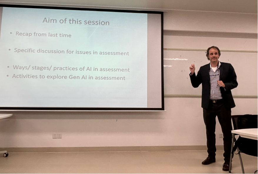 UIC students were privileged to have Dr Freek Olaf de Groot back on campus again. In collaboration with Dr Jackie Yeoh, a lecturer from the English Language and Literature Studies (ELLS) programme, he facilitated a hands-on workshop on delving into the boundless possibilities of Generative Artificial Intelligence in education. This workshop which took place on 9 April 2024 captivated the attention of two faculty members and thirty-three eager students. The workshop which focused on the intersection of artificial intelligence (AI) and assessment also provided insights into the potential limitations of AI for both educators and learners alike.