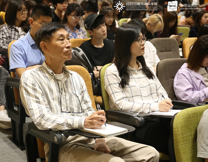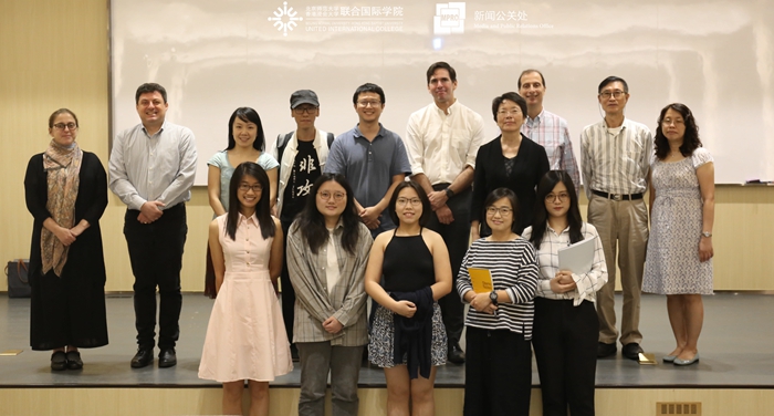 After closing the lecture, he met briefly with students from the English Language and Literature Studies (ELLS) and Contemporary English Language and Literature (CELL) programmes who had presented papers at Duke Kunshan University Humanities Research Conference, including Year 4 CELL student, Li Yifan, whose paper was awarded first prize.
