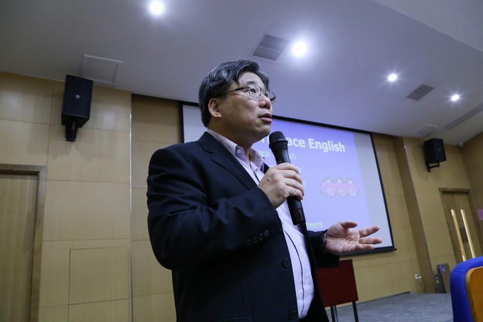 Dr Li began the lecture by introducing how his working experience related to the lecture topic as well as expressing his wishes on hoping the DHSS graduates to master their workplace English for the future. Dr Li questioned the audience about the effective ways of learning English, before stating that the key of using English as a communication tool is to use it in an appropriate way, as language itself is highly context dependent. Dr Li suggested using simple English in business context as the field emphasised on clarity and preciseness.