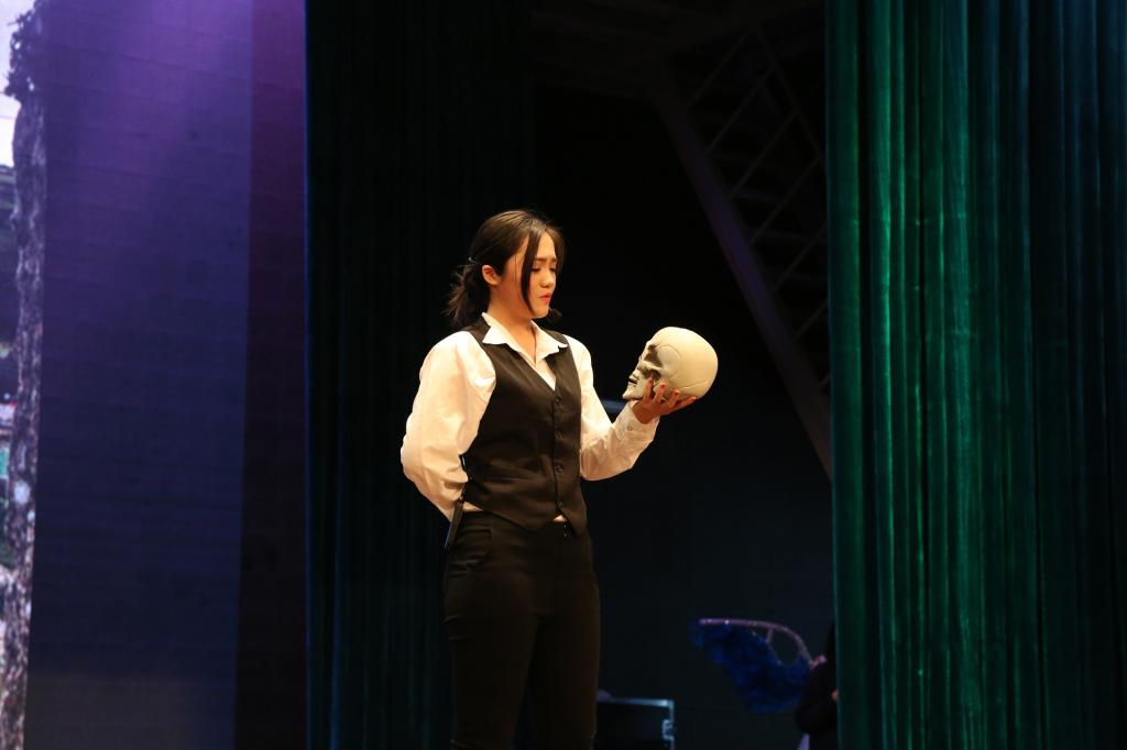 The second drama I performed in was the ‘To Be or Not To Be’ soliloquy from Hamlet. This one was a great challenge for me because the individual actor has to express all the feelings and emotions that the soliloquy contains. I really appreciate the fact that Dr Benjamin Barber introduced its background to me so that it would be easier for me to remember lines and also gave me a deeper understanding of the soliloquy. Besides, Professor Mei-hwa Sung and Dr Xu Xi gave me some suggestions about how to better transmit feelings and emotions to audiences. It is my honor to have this chance to get close to Shakespeare’s language and cultivate my ability to be confident and poised in front of the audiences.