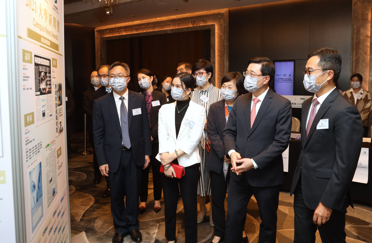 Chief Secretary for Administration John Lee Ka-chiu (second from right) and guests looking at award-winning works