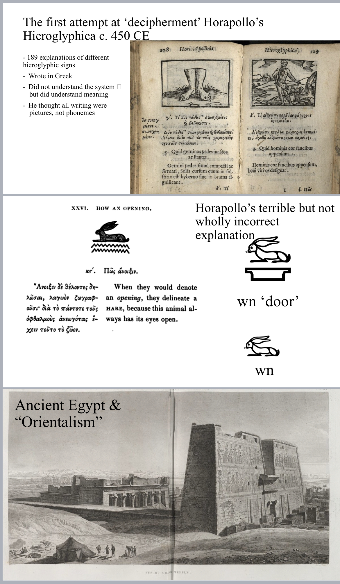 The lecture discussed the Egyptian hieroglyphic script, which is one of the world's oldest writing systems. The first hieroglyphic texts date as far back as 3100 BCE and it was in continuous use until the period of Roman domination in Egypt (c. 4th Century CE). Due to the graphic nature of the script and its dissimilarity to later writing systems, scholars struggled to decipher Egyptian hieroglyphs despite many focused attempts throughout classical, medieval, and renaissance history. It was not until the 19th century, and after various scientific expeditions to Egypt, that breakthroughs were being made. This decipherment would eventually provide a foundation for the dedicated historical discipline of ‘Egyptology’. Scholars could now give a voice to the hitherto silent and mysterious texts of the Egyptian past – unlocking Egyptian history and thousands of texts for historians. The talk narrated and cross-examined key steps in the decipherment process, noting the elements of the Egyptian hieroglyphic script which provide unique challenges for linguists. The lecture was addressed to a general audience in languages and ancient cultures.