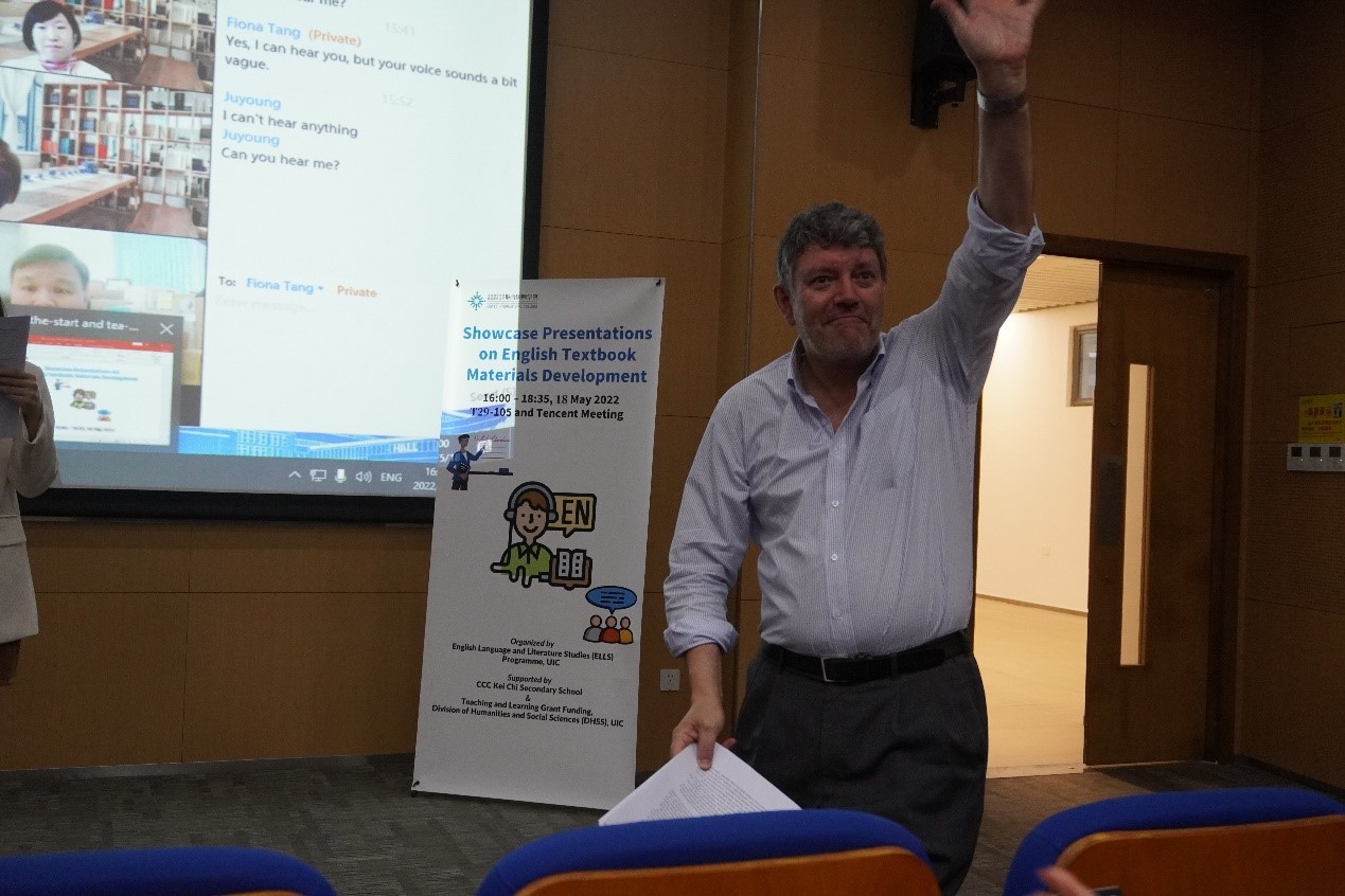 The Acting Associate Dean of the Division of Humanities and Social Sciences (DHSS) & the Programme Director of ELLS, Prof. John Corbett, offered opening remarks at the beginning of the event. He pointed out that “Although it is hard for us to satisfy the need of teachers and students at the same time, it is still worthwhile and meaningful for ELLS students to learn about how to arrange and design teaching materials by participating in this educational and practical project.”