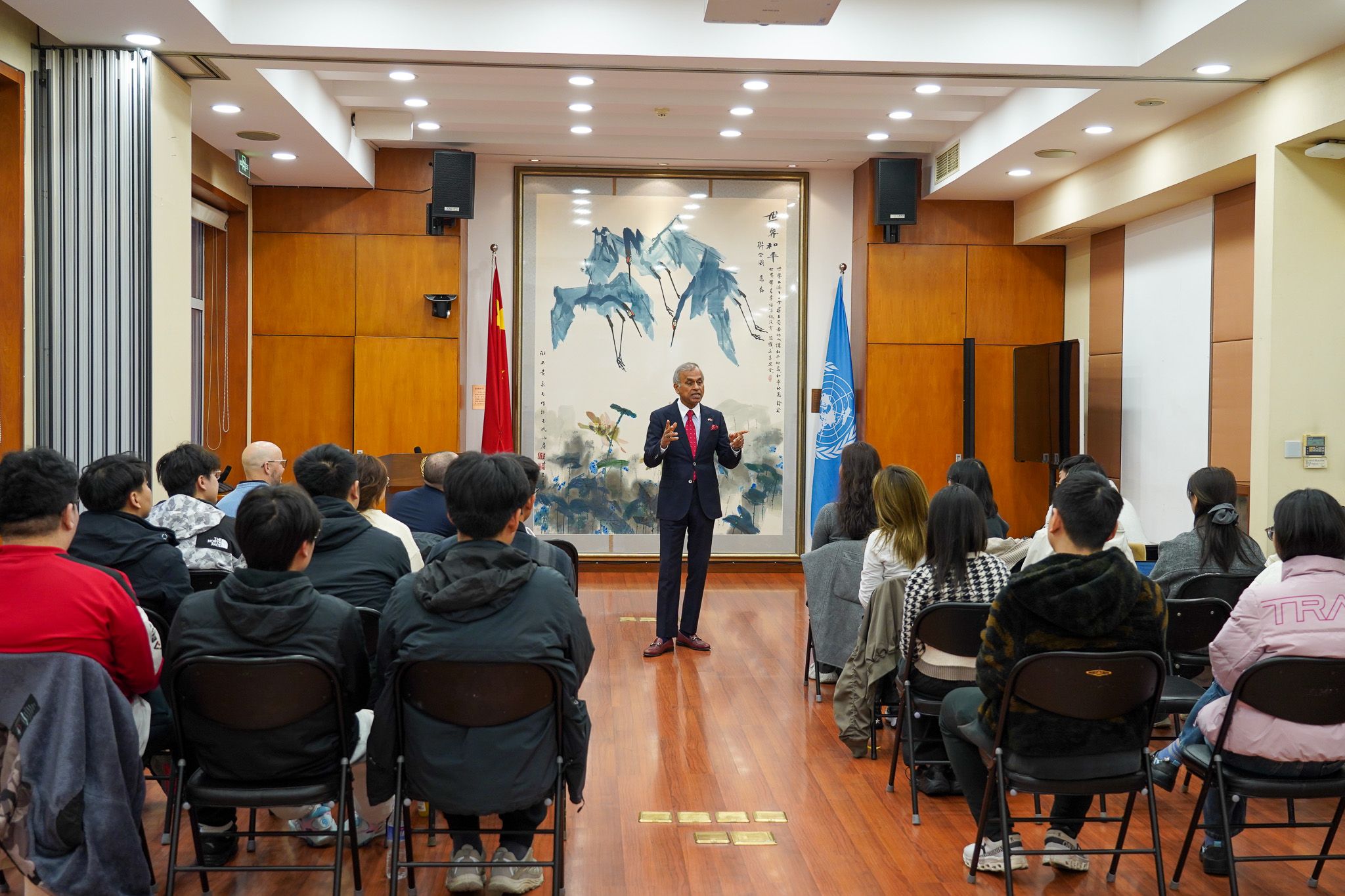 A standout moment of the trip was a special session at the UN Resident Coordinator’s Office, where students interacted with Mr. Siddharth Chatterjee, the United Nations Resident Coordinator in China, who leads all 26 UN agencies in the country. In a wide-ranging dialogue, Mr. Chatterjee discussed topics spanning global governance and UN reform to the importance of holistic well-being and mindfulness in leadership.