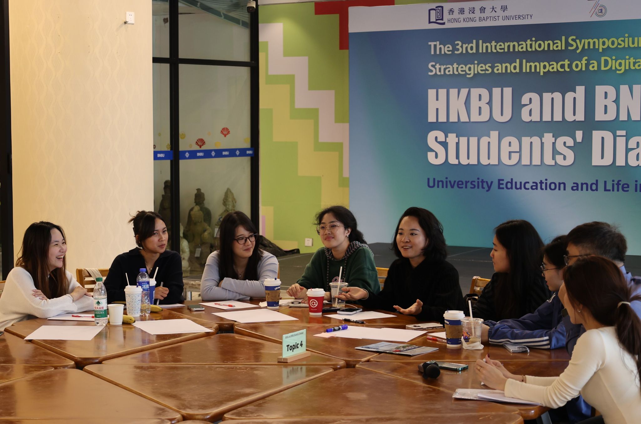 To conclude the event, a dialogue session was held between HKBU and BNBU students. Topics ranged from digital inequality, academic integrity, to social media and mental health, and digital literacy. Students demonstrated critical thinking in weighing the pros and cons of technology and brainstormed solutions to some of the challenges. Examples included organizing workshops to increase AI literacy, creating AI handbooks, and establishing support for mental health on campus.
