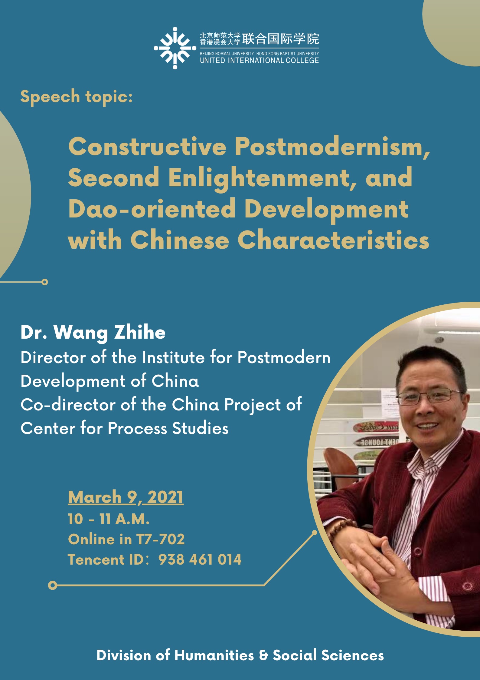 Dr. Wang Zhihe, a former researcher of Chinese Academy of Social Sciences, received his Master's Degree in Western Philosophy from Peking University, China, and his Ph.D. in Philosophy of Religion from Claremont Graduate University, USA. He currently serves as Director of the Institute for Postmodern Development of China, and Co-director of the China Project, at the Center for Process Studies. He is also an executive member of the Ecological Development Union International (EDUI) as well as an expert advisor of the China Biodiversity Conservation and Green Development Foundation. He is a leading figure in the constructive postmodern movement, as well as in the ecological movement in China. His areas of specialty include process philosophy, constructive postmodernism, ecological civilization, and Second Enlightenment. His publications include several books, including Ecological Civilization and Marxism (2008); Second Enlightenment (with Meijun Fan, 2011); Process and Pluralism: Chinese Thought on the Harmony of Diversity (2012); Green Development and Innovation from A Global Perspective (with Jianjun Zhao, 2013).