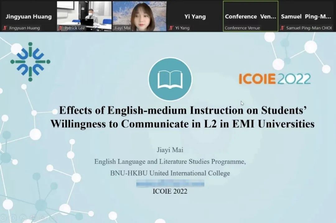 2022年7月,UIC 2018级英语语言文学专业麦嘉仪、杨熠、黄靖媛、陈宣颖和郑雨宁五位同学在线参与在香港举行的2022开放与创新教育国际会议(ICOIE 2022)并发表论文。其中,麦嘉仪获得本届大会最佳学生论文奖。
