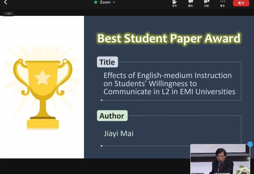 麦嘉仪获得本届大会最佳学生论文奖
