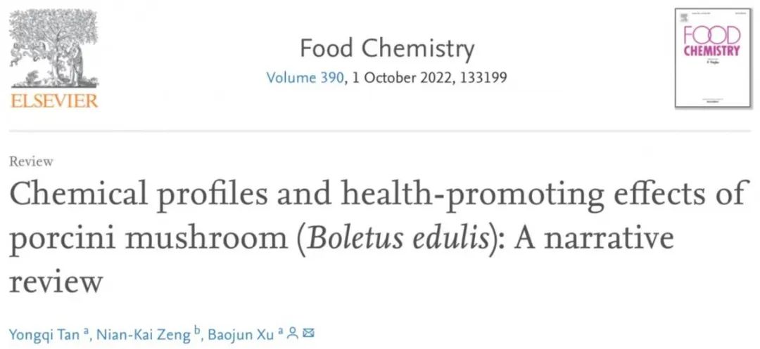 2018级食品科学与工程专业谭泳淇作为第一作者的论文:Chemical Profiles and Health-promoting Effects of Porcini Mushroom (Boletus edulis): A Narrative Review,被食品科学领域国际期刊Food Chemistry接收,预计于2022年10月发表。