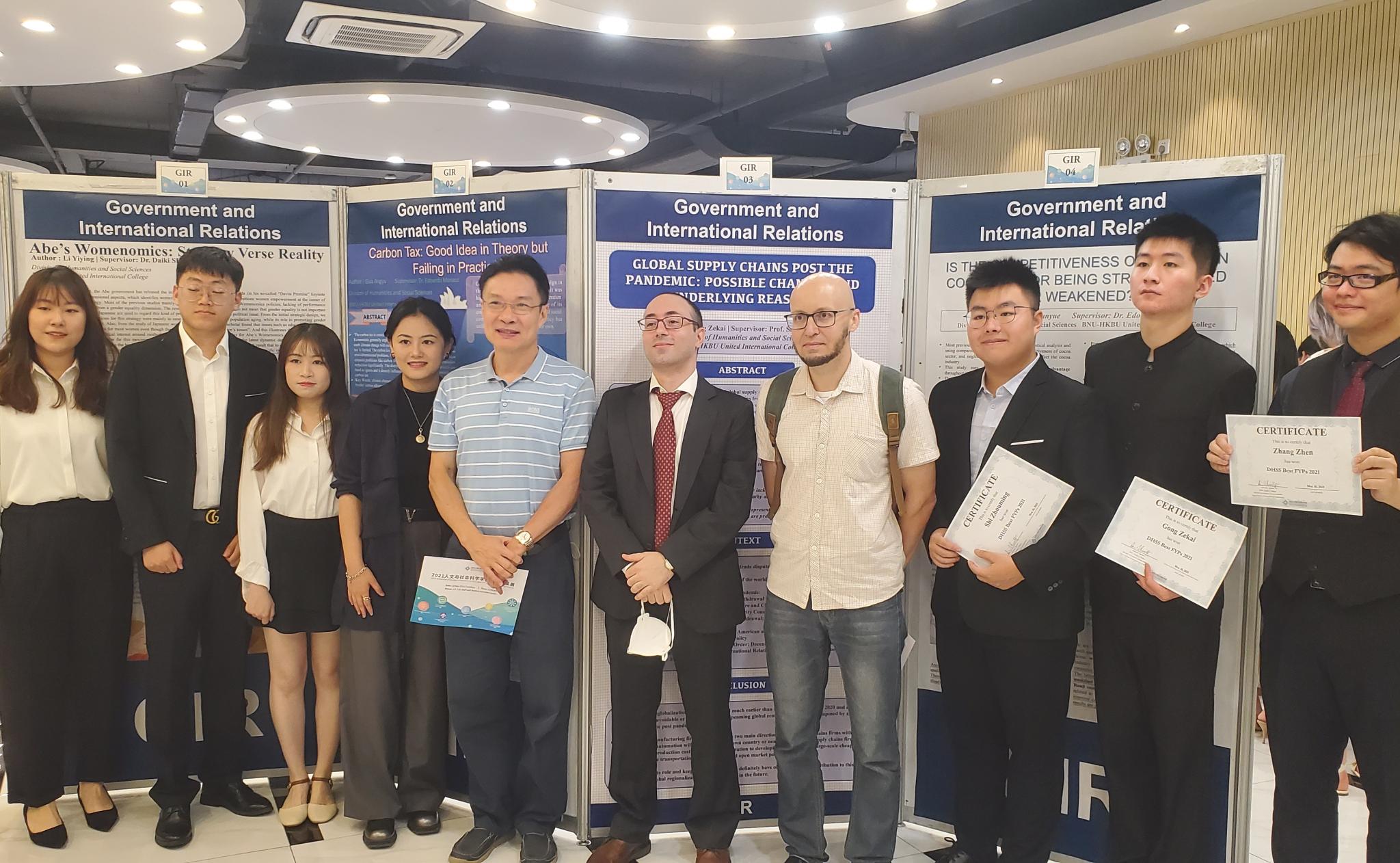 2021年5月18日,人文社会科学学部(DHSS)“2021年学生成果展”暨“最佳毕业论文颁奖仪式”隆重开幕。今年,8名GIR大四学生石周明、蒋宇涵玥、李奕莹、郭静宇、张震、巩择楷、赵孜诺、王浩辰赢得了最佳 毕业论文奖并在展会上展示了他们的论文海报。