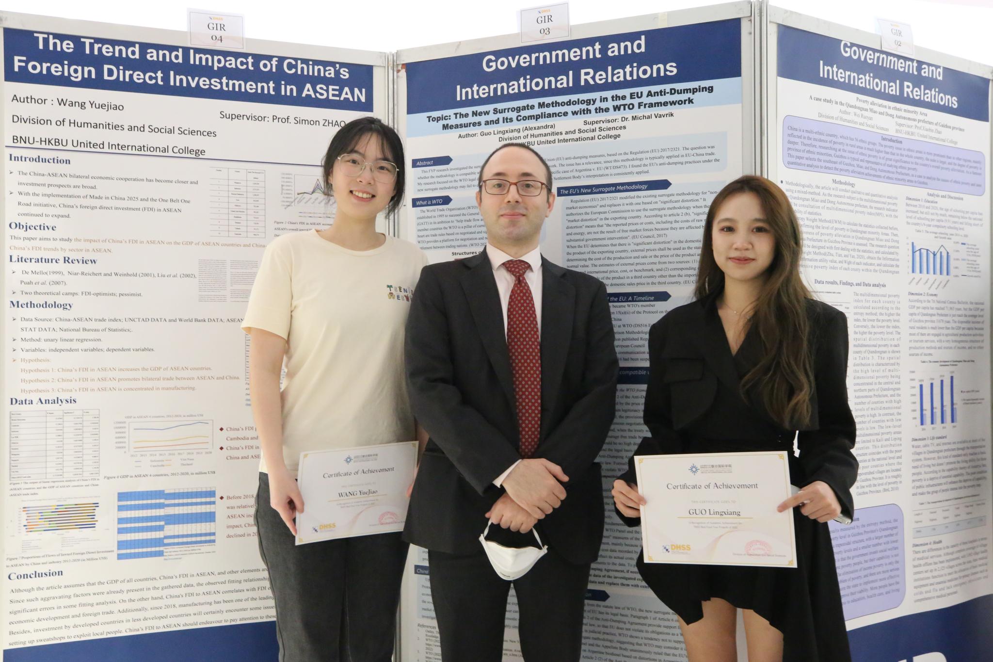 The Division of Humanities and Social Sciences (DHSS) Exhibition of Student Achievements 2022 for Best Final Year Projects (FYPs) and Award-Winning Projects was held on May 18, 2022. Five senior GIR students - Ms. Guo Lingxiang, Ms. Wang Yuejiao, Ms. Wei Ruoyan, Ms. Qin Siyao, and Ms. Zhong Yuyi who excelled in their respective projects - received the FYP Awards and presented posters of their work at the exhibition.