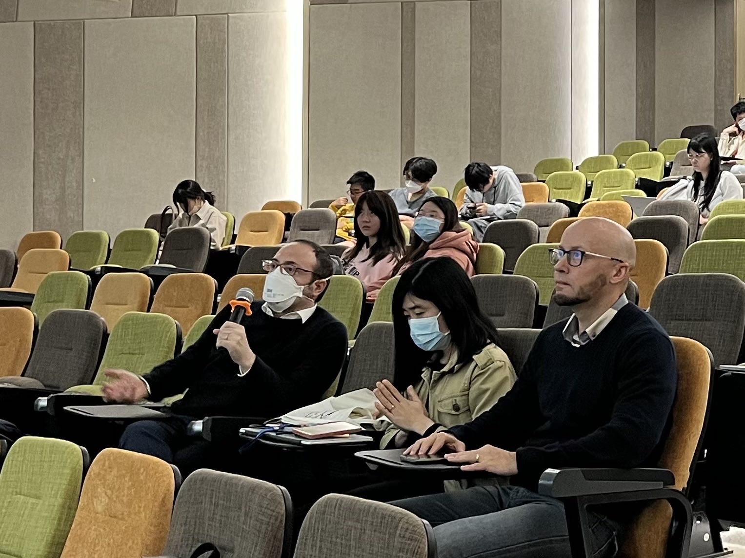 GAD Assistant Professor Dr. Shuang WU asking questions of Mr. Egulu