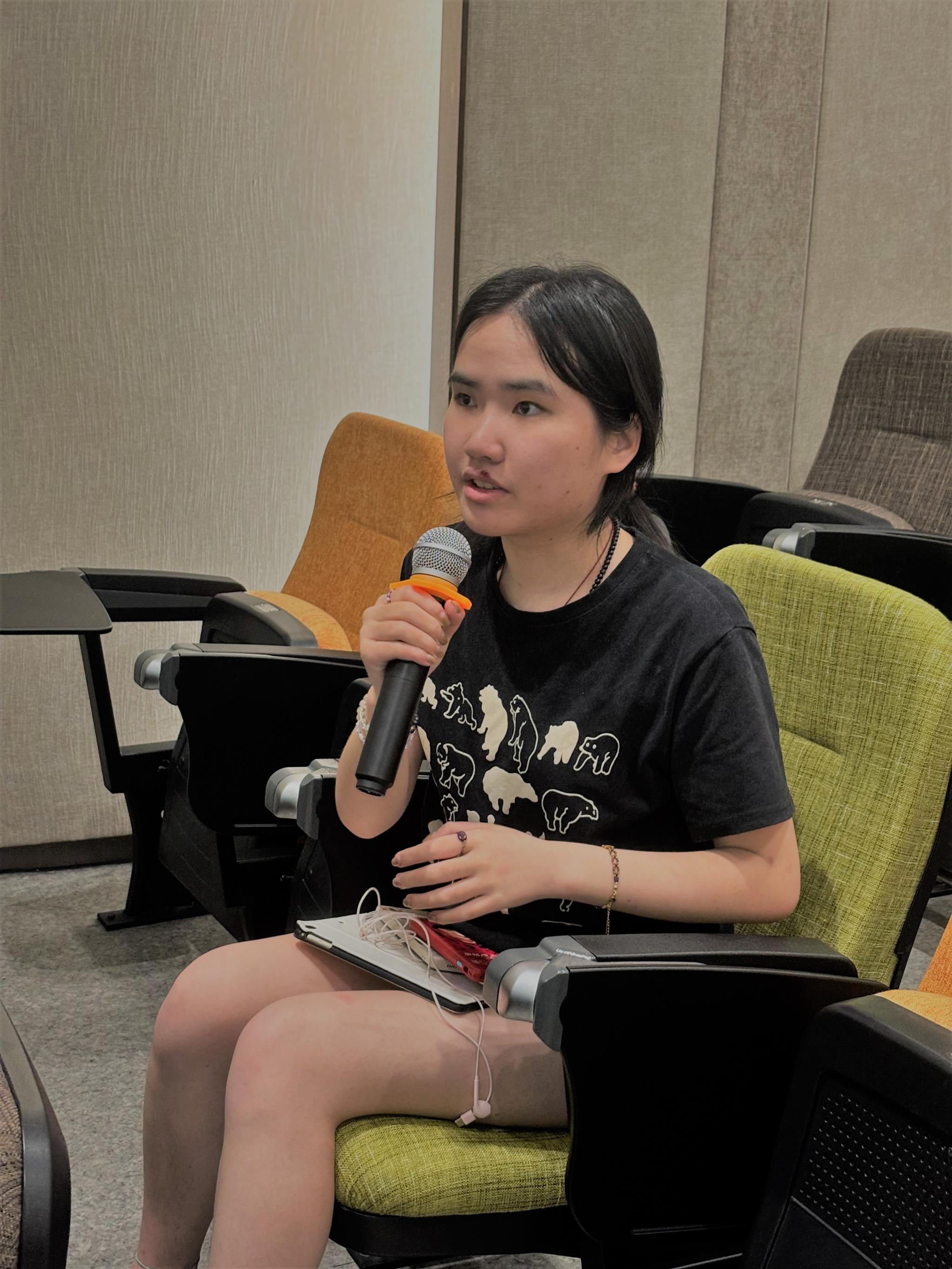 Among the attendees, GAD student Zhang Jing asking another question during the Q&A session.