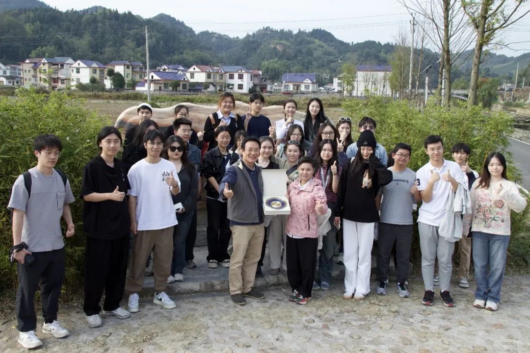 In Baojing, the group explored a beautiful new rural development project and learned about rural tourism initiatives from the village secretary, followed by a group photo in front of the village name monument.
