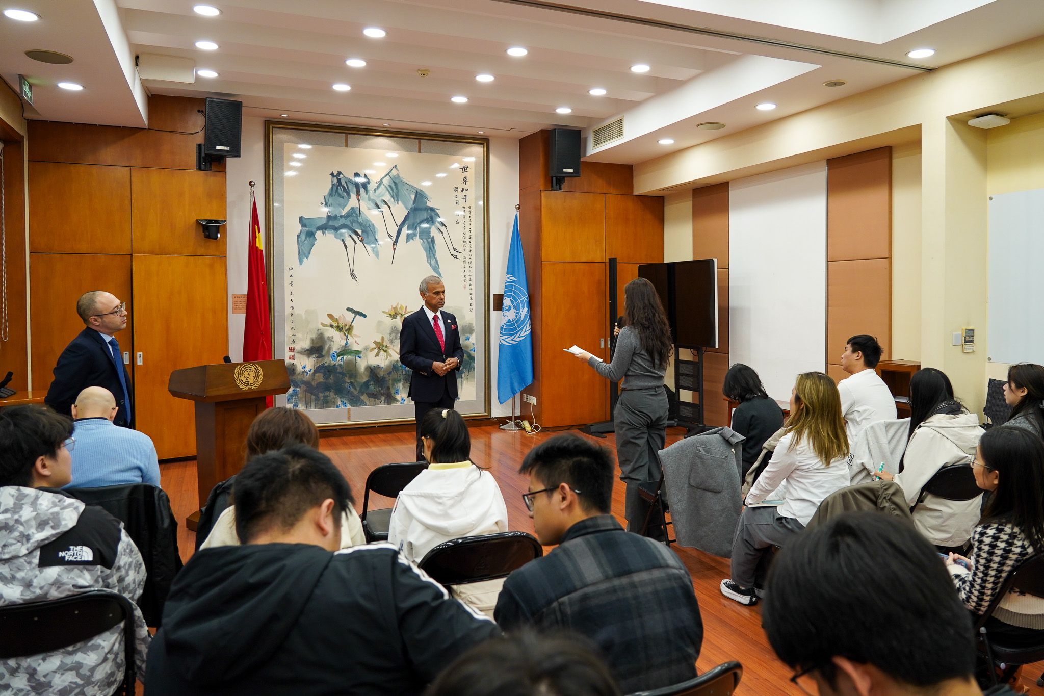 A standout moment of the trip was a special session at the UN Resident Coordinator’s Office, where students interacted with Mr. Siddharth Chatterjee, the United Nations Resident Coordinator in China, who leads all 26 UN agencies in the country. In a wide-ranging dialogue, Mr. Chatterjee discussed topics spanning global governance and UN reform to the importance of holistic well-being and mindfulness in leadership.