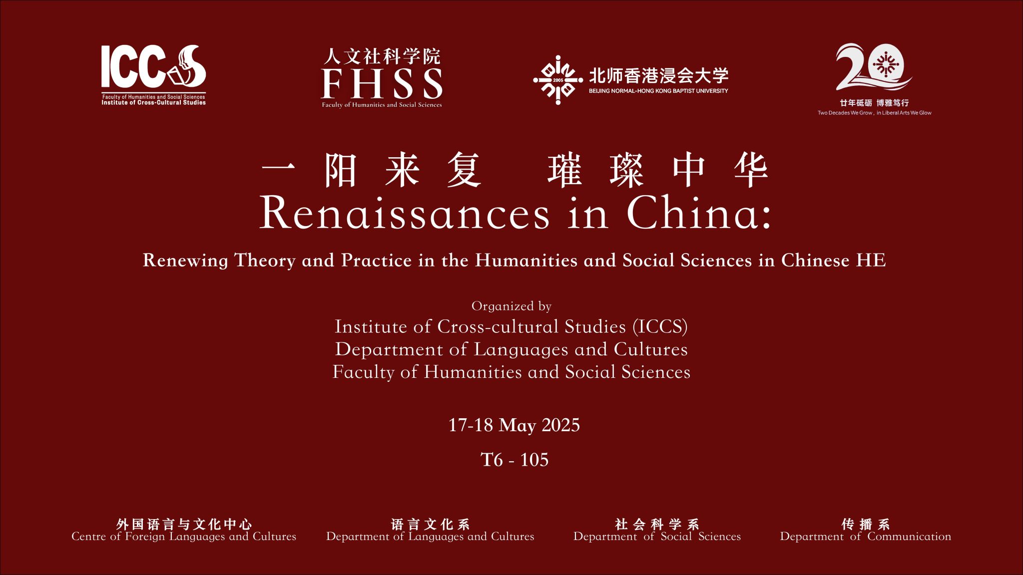 Twenty-first century academia faces unprecedented challenges in the face of intense technological and geo-political tendencies that require calculated investment and innovation within and across disciplines as a collective response. This watershed moment signifies a complex set of 'rebirths' of centuries-old academic, literary, and disciplinary practices. Drawing upon the symbol of the Renaissance - a concept and era representing an intense and rich period of cultural, artistic, political, and economic ‘rebirth’ in Europe, this conference explores these challenges, their inherent complexities, and our responses to them within the humanities and social sciences. The conference theme is immediately pertinent to China given its unprecedented rise in prosperity and resurgent global presence. Its relevance further extends to Beijing Normal-Hong Kong Baptist University (BNBU) which celebrates its 20th anniversary in 2025.