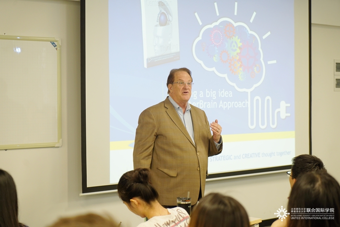 27日下午,北师港浸大人文与社会科学学部公共关系与广告学兼职副教授 James Ebel先生带来了关于“全脑思维:产品创意与品牌定位”的讲座。