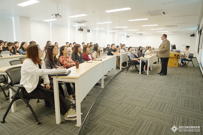 11月26日至27日,北师港浸大(UIC)人文与社会科学学部(DHSS)以“策略传播”为主题举办了一系列讲座。讲座嘉宾分别是美国宾夕法尼亚州立大学传播学院广告与公关系主任、SSCI国际期刊 《大众传播与社会学刊》主编沈福元教授,以及北师港浸大人文与社会科学学部公共关系与广告学兼职副教授、CenterBrain Partner首席执行官James Ebel先生。