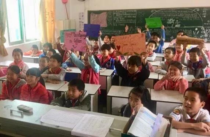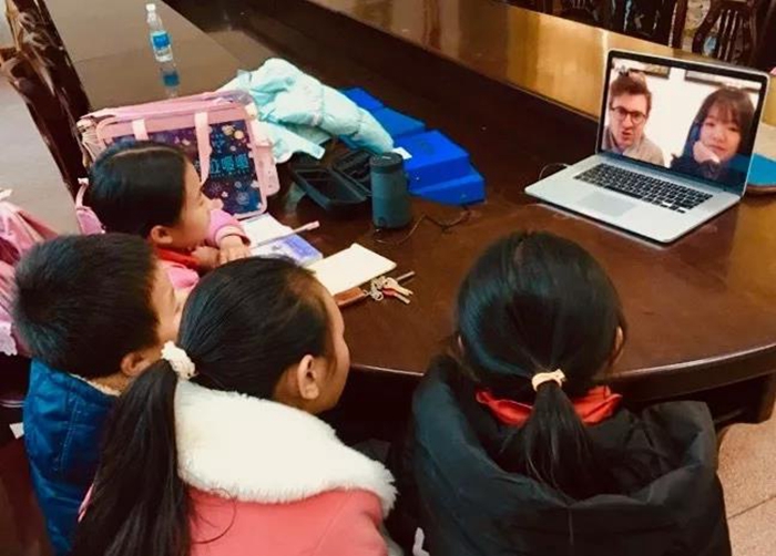 得分更高的学生还会有一个意想不到的特权。钟老师会请自己在北京、在英国或是西藏的朋友作为神秘嘉宾来跟孩子进行一个一对一的视频。这些神秘嘉宾会结合他们的人生阅历去和学生分享一些不一样的东西。有太多的同学好奇视频对面的人是什么样的、又在说些什么,所以当一个孩子在跟神秘嘉宾视频的时候,总会有很多个小小的“偷窥者”躲在门后面好奇的往教室里面张望。这样的奖励很有神秘感,学生对此也感到非常期待。
