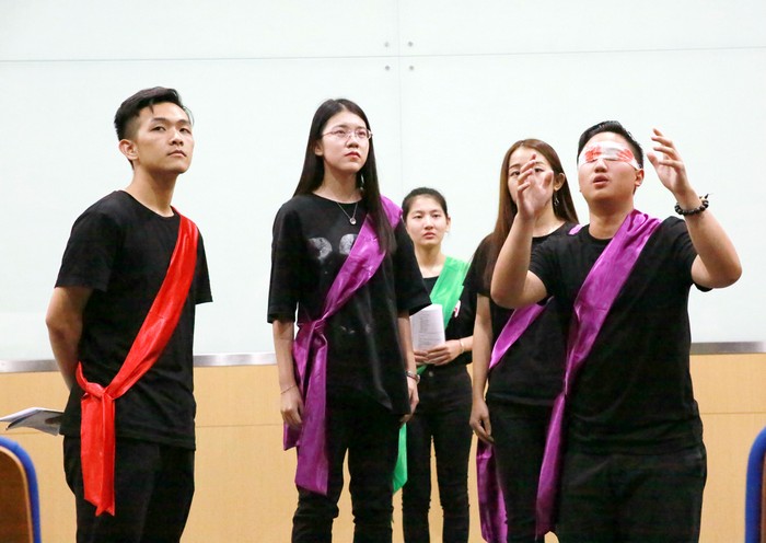 同学们正在表演《俄狄浦斯/安提戈涅》