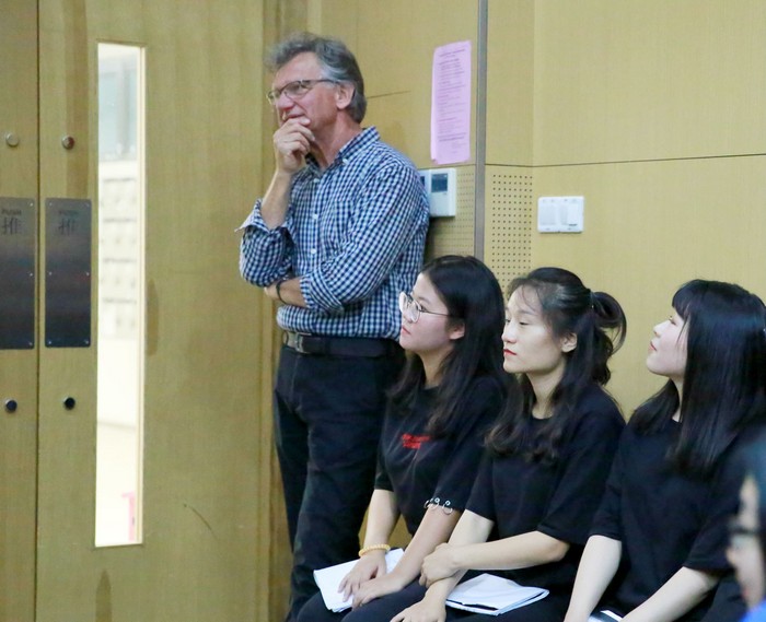 Britton教授还于9月25日带来了以 “Look, Listen, Think, Feel, Show, Tell…”为主题的讲座,向全校师生阐释他对戏剧的理解。两小时的讲座中,他从自身的执导、创作经验出发,以H(History) U(Universal) M(Mythology) A(Artistic Courage) N(Naturalism) I(Interior Truth) T(Tension) Y(Yearning)八个关键词展开叙述,同时穿插ELLS同学的戏剧表演帮助观众理解。